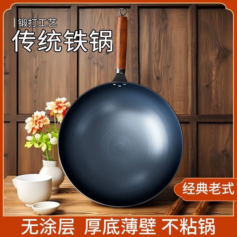 Carbon Steel Wok Pan Stir Fry Pans - Chinese Wok with Round Bottom Pow Wok - Traditional Japanese Woks - Black Carbon Steel