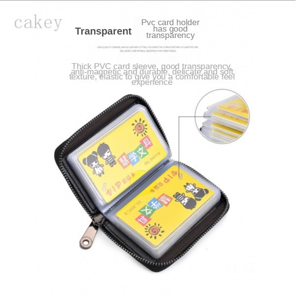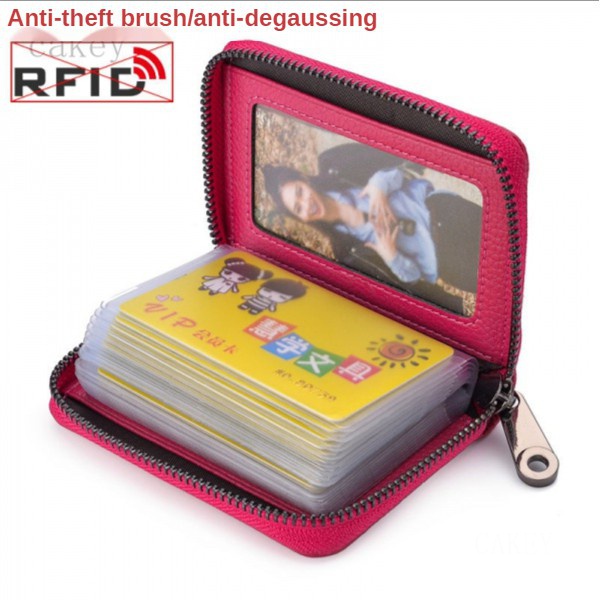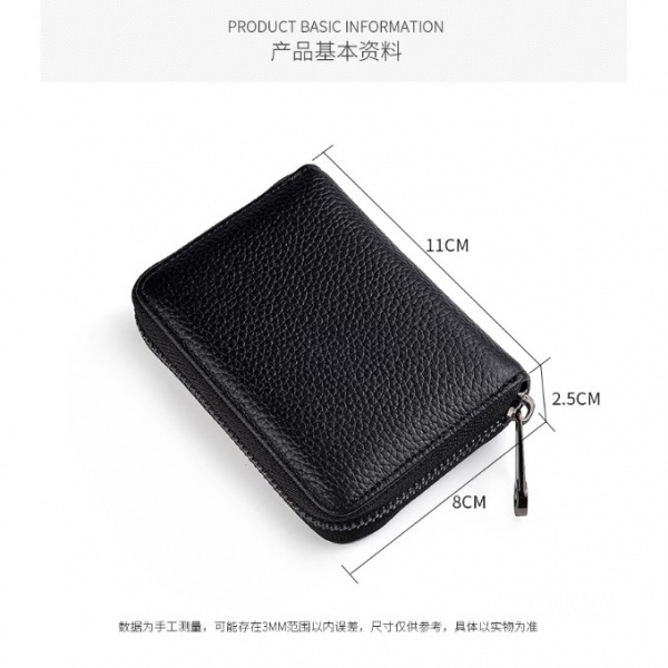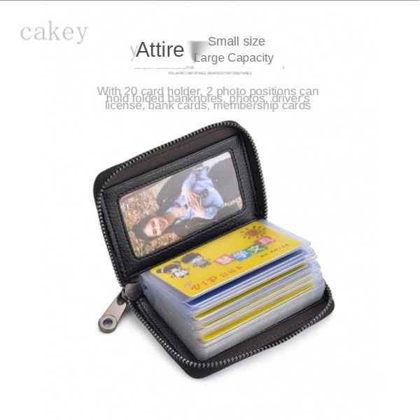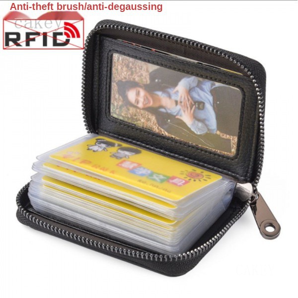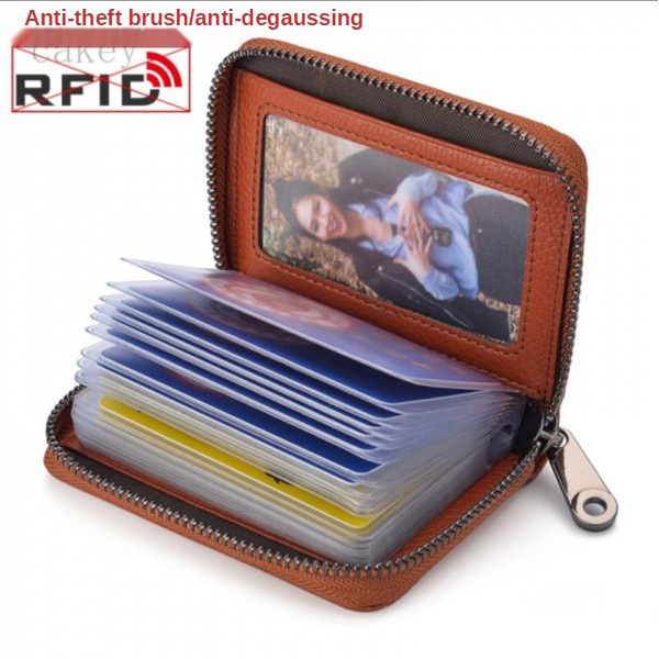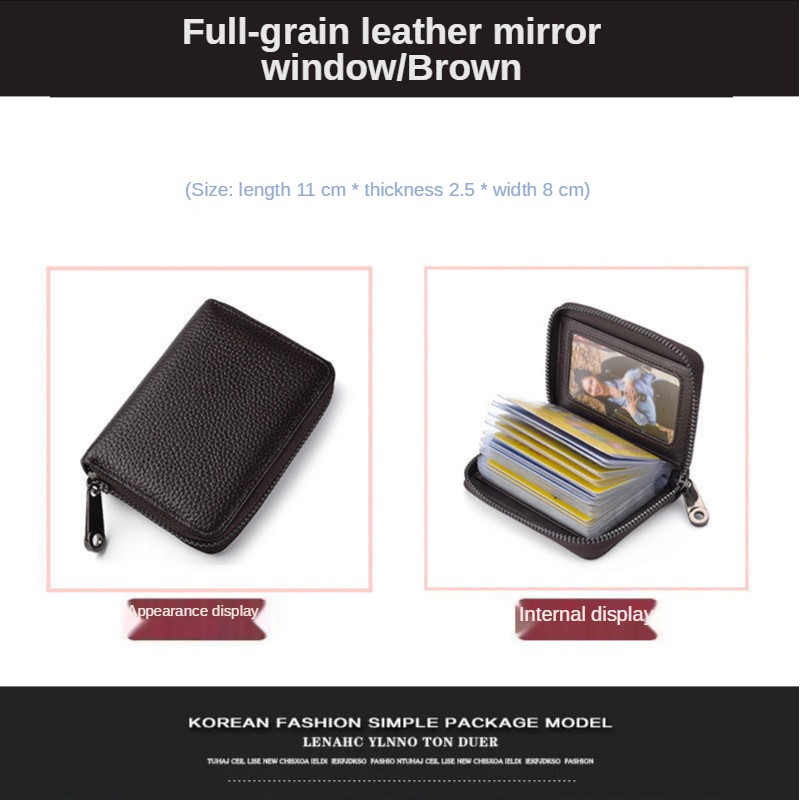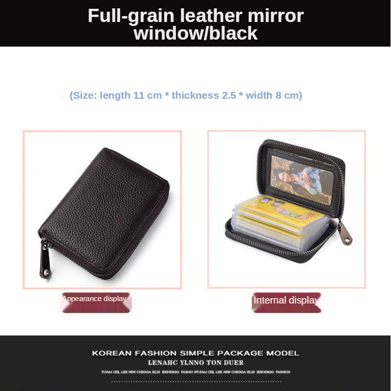Card Holder Anti-Theft Swiping Genuine Leather Card Holder Zipper Card Clamp Multiple Card Slots Driving License Leather Case Men's ID Coin Purse