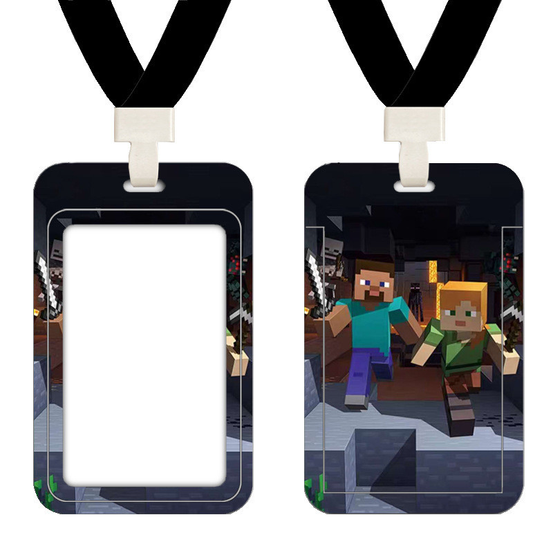 Card Holder Minecraft My World Creeper Campus Student Meal Card Access Control Bus Subway Certificate Holder with Lanyard
