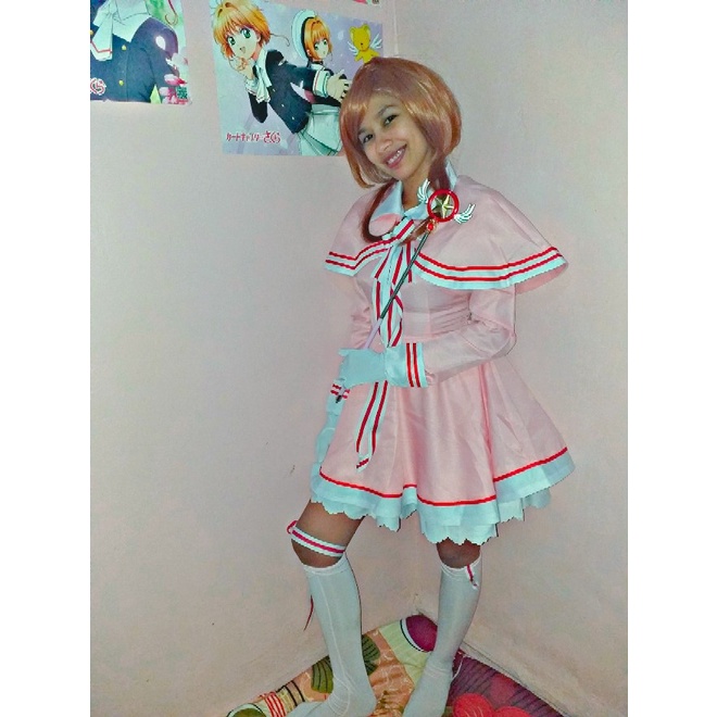 Cardcaptor Sakura Kinomoto Sakura Cosplay Costume Uniform Pink Dress With Hat