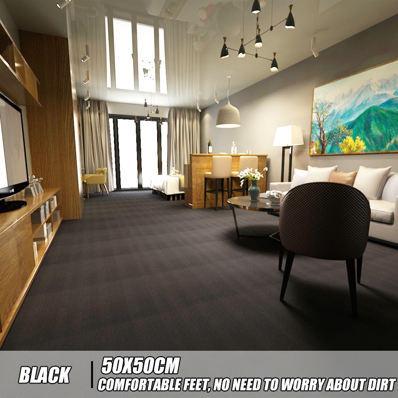 Carpet Tile Mat 50x50cm Self-adhesive for Bedroom Living Room Office Floor Non-slip Carpet Stickers