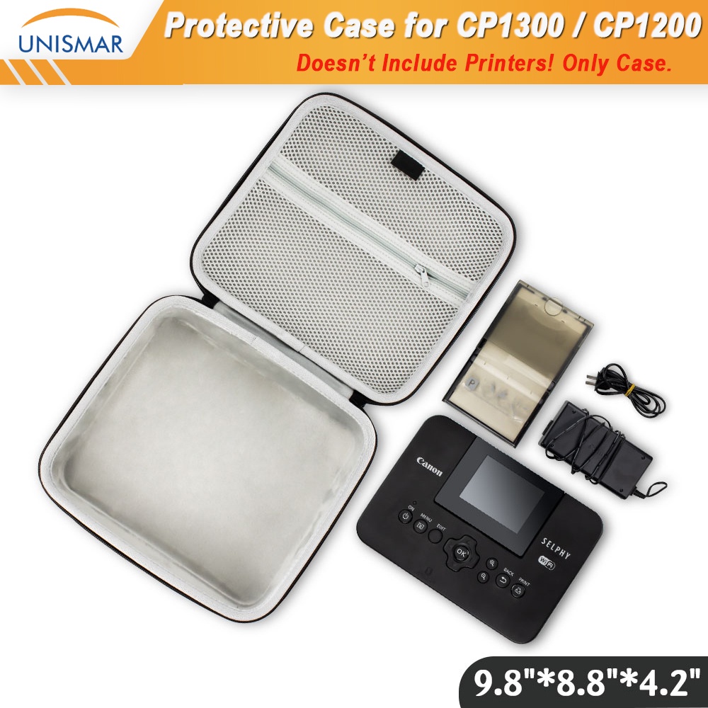 Carrying EVA Hard Case (NO Printer Included) for Canon Selphy CP1300 CP1200 Photo Printer Bag Protective Storage Box with Handle Zipper Design Water-proof Black 9.8*8.8*4.2 Inch
