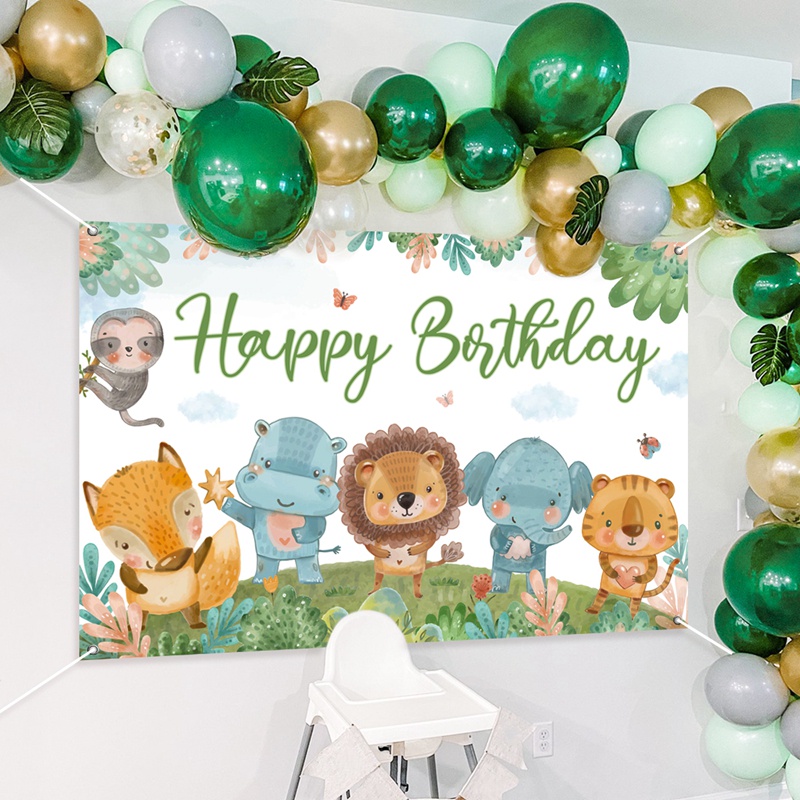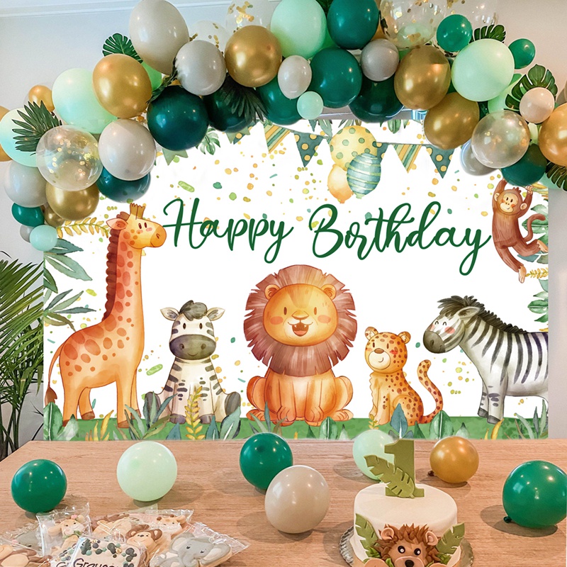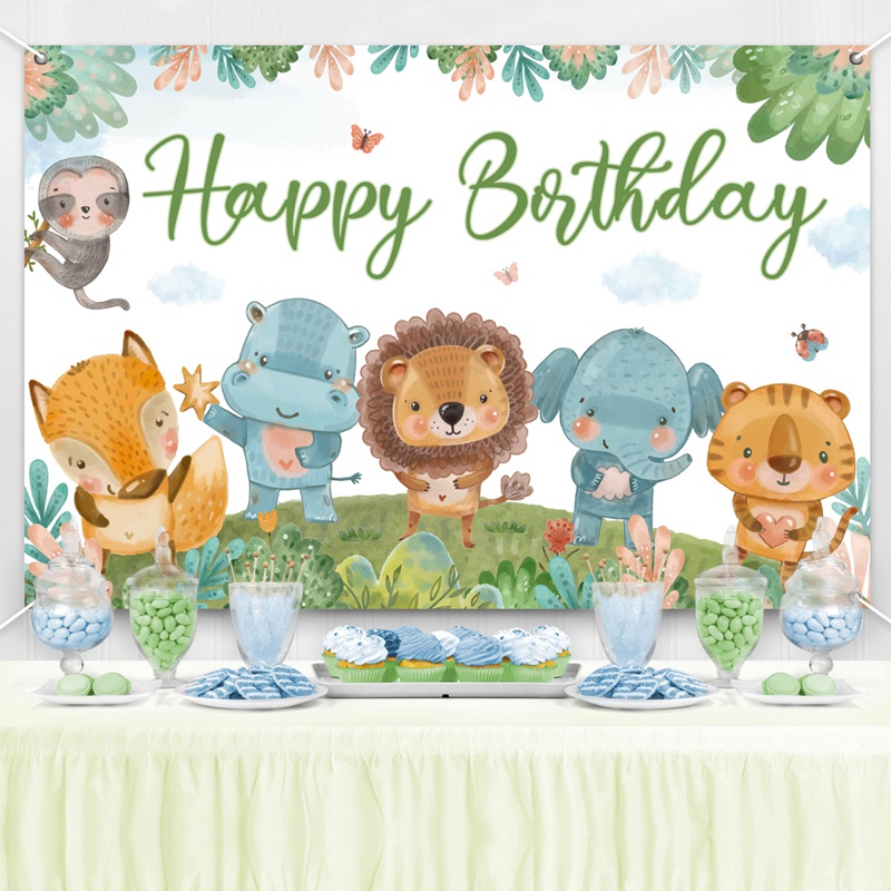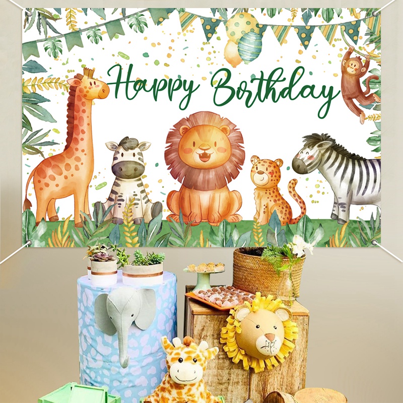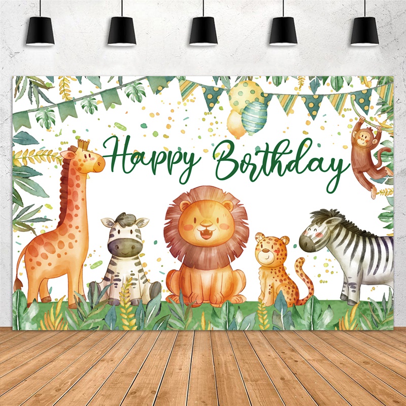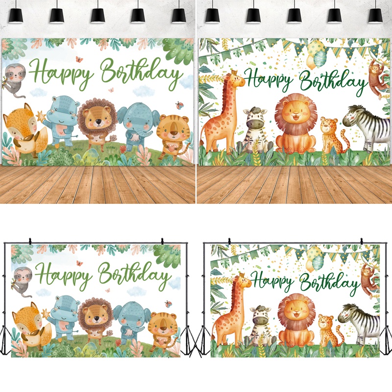 Cartoon Animal Jungle theme Happy Birthday Backdrop For Photoshot Lion Giraffe Background Forest Party Decoration For Nweborn Baby Shower Party Needs Jungle Safari Party Decor