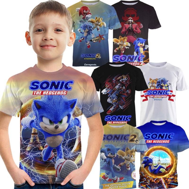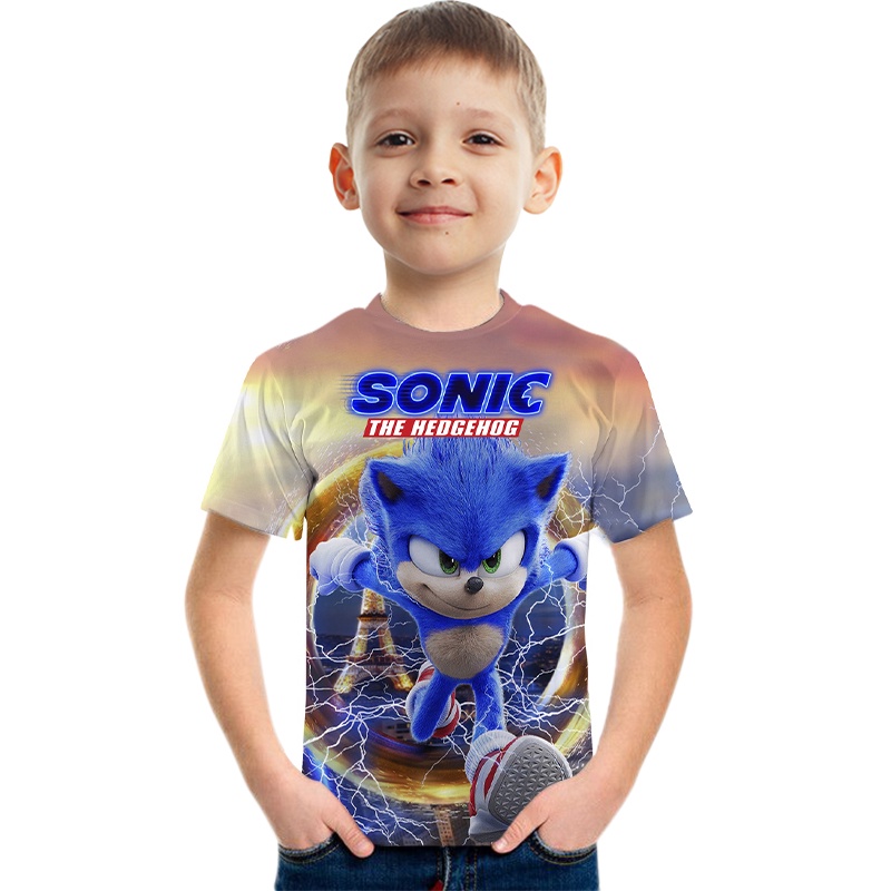 Cartoon Animated Sonic Kids T-Shirt Boy Character Print Short Sleeve Shirt