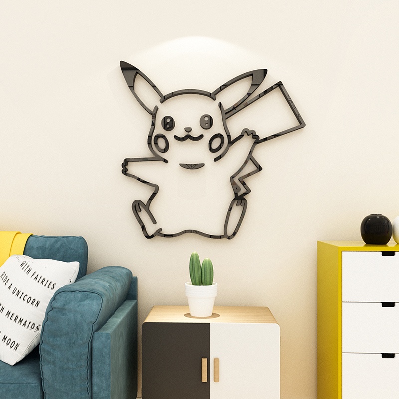 Cartoon Anime Pikachu Wall Stickers Door 3D Acrylic Three-Dimensional Children's Bedroom Bedside Decoration