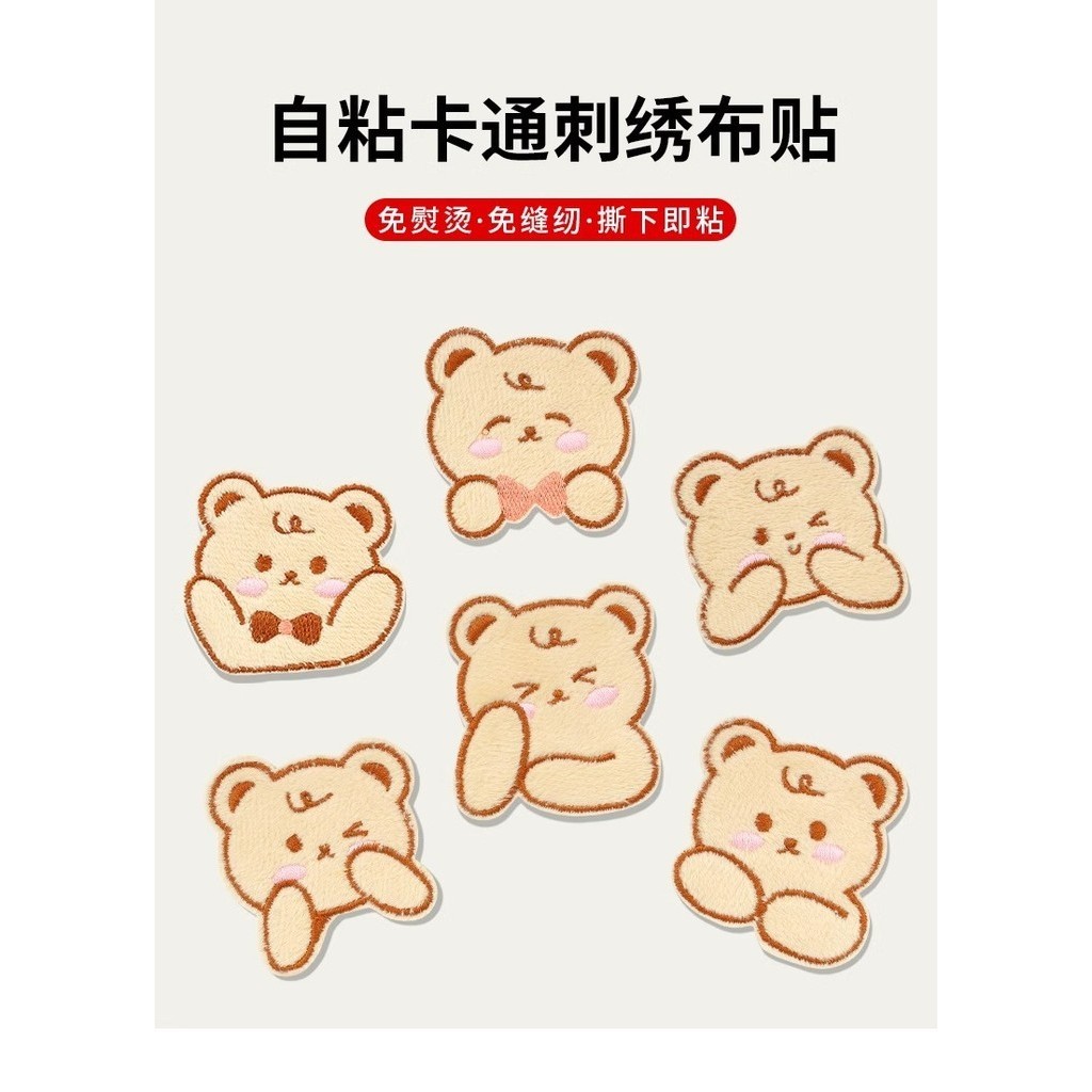 Cartoon Cartoon Bear Patch Sticker DIY Self-Adhesive Seam-Free Embroidery Clothing Cloth Sticker High-End Seamless Repair Decoration Down Jacket Clothes Pants Cartoon Embroidery Cloth Sticker