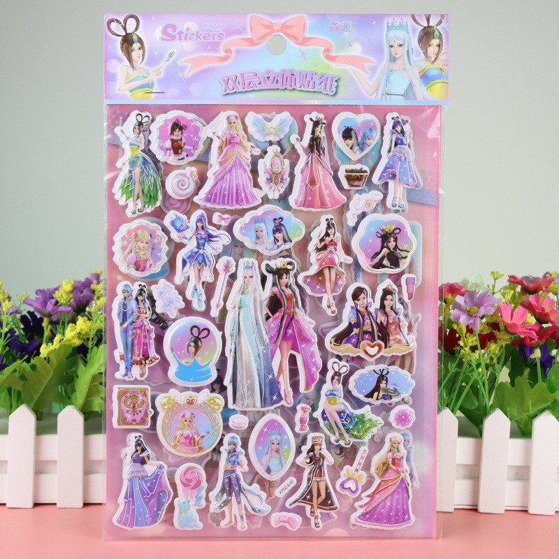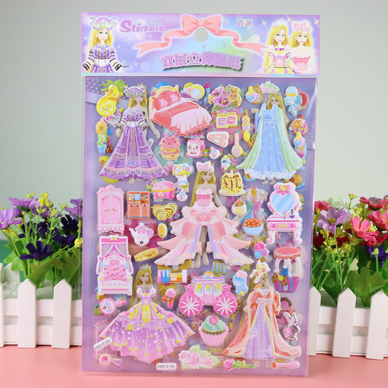 Cartoon Cartoon Stickers Children's Three-Dimensional Bubble Stickers New Style Girls Dress-Up Stickers Bubble Stickers Barbie Princess Stickers Clothes Stickers High-Value Girl Heart Gifts Gifts Prize