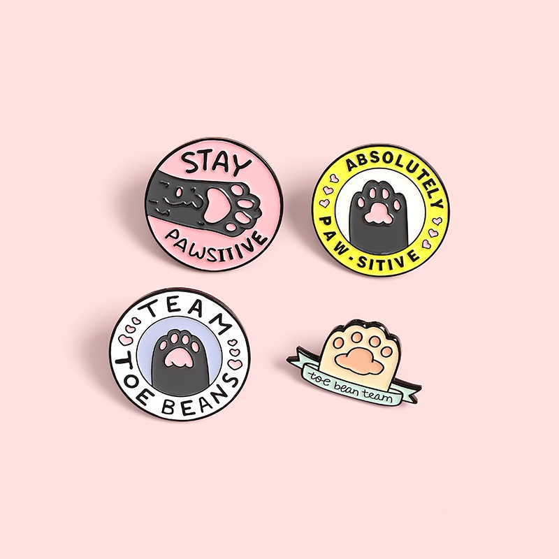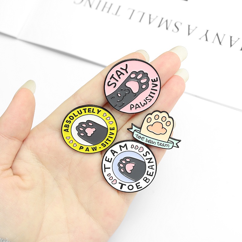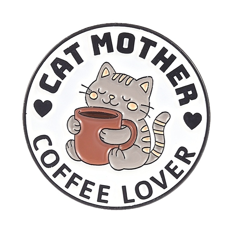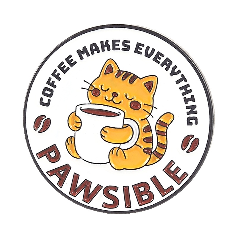 Cartoon Cat Paw Enamel Pin Animal Brooches Coffee Kitten Pins Cute Cat Round Brooch Lapel Badges Jewelry Gift for Friends