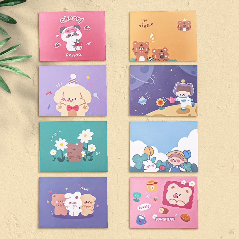 Cartoon Colorful Foldable Greeting Cards with Envelope Birthday Party Invitation Card