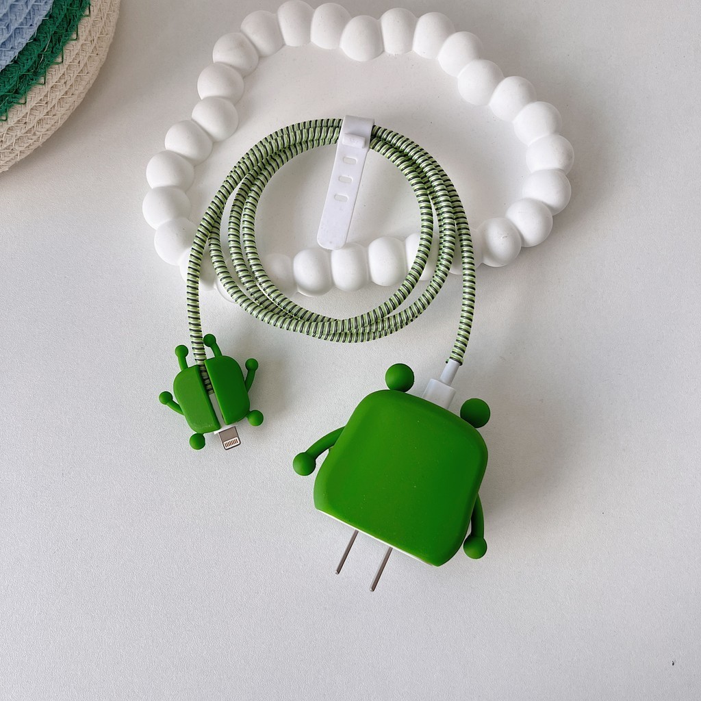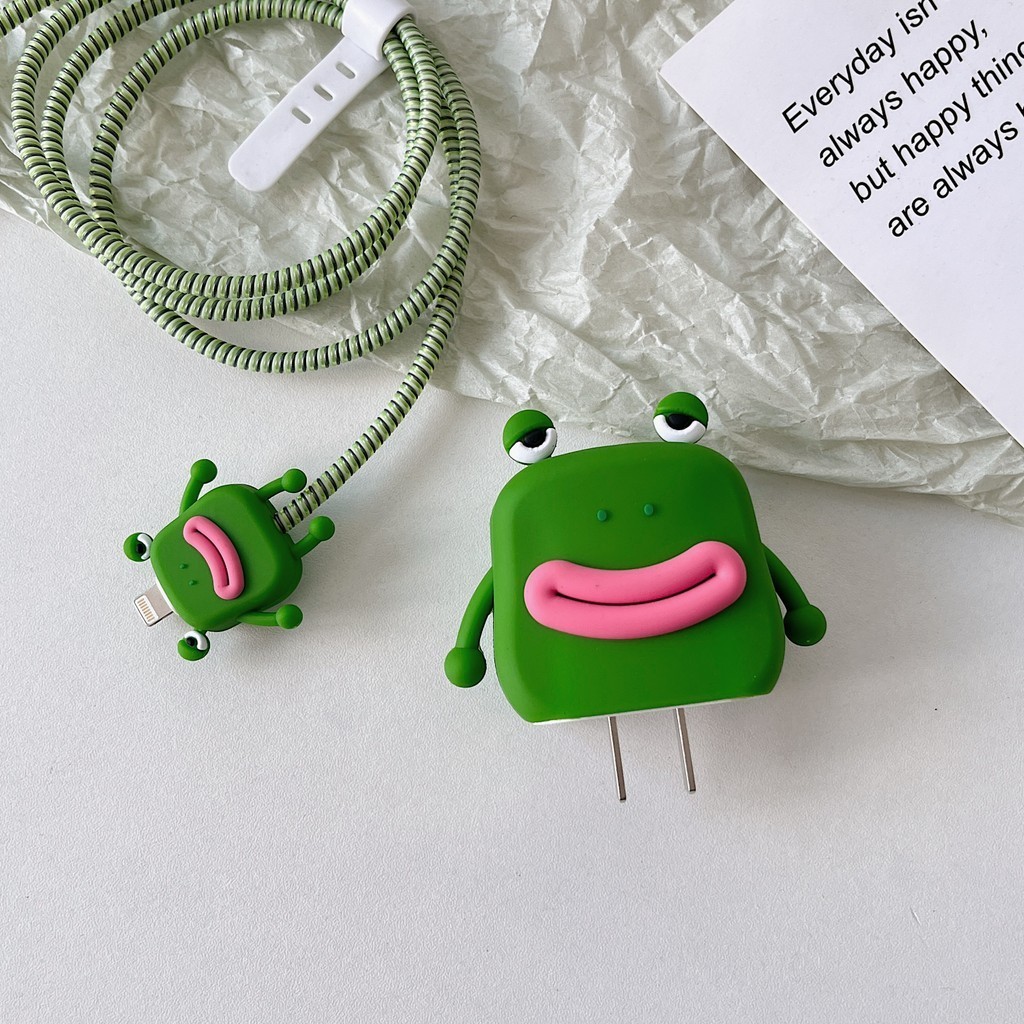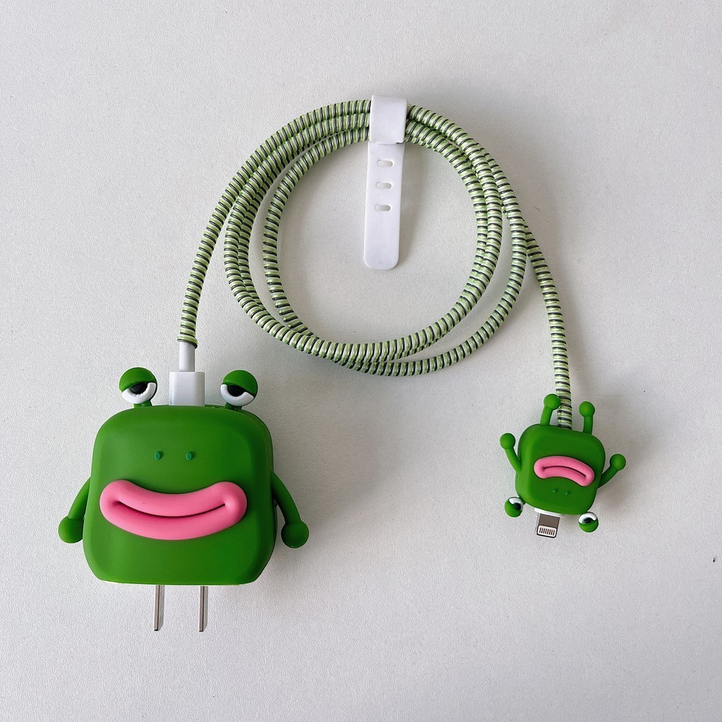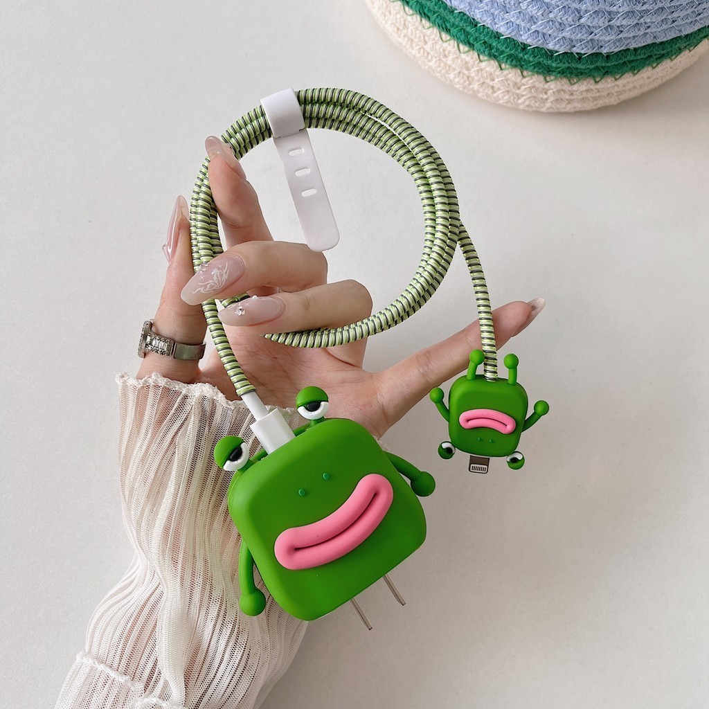 Cartoon Cute Frog Data Cable Protective Case iPhone 18W/20W Charger Protective Cable Fast Charging Head Cover