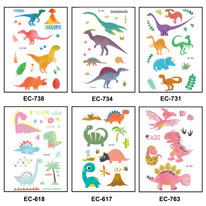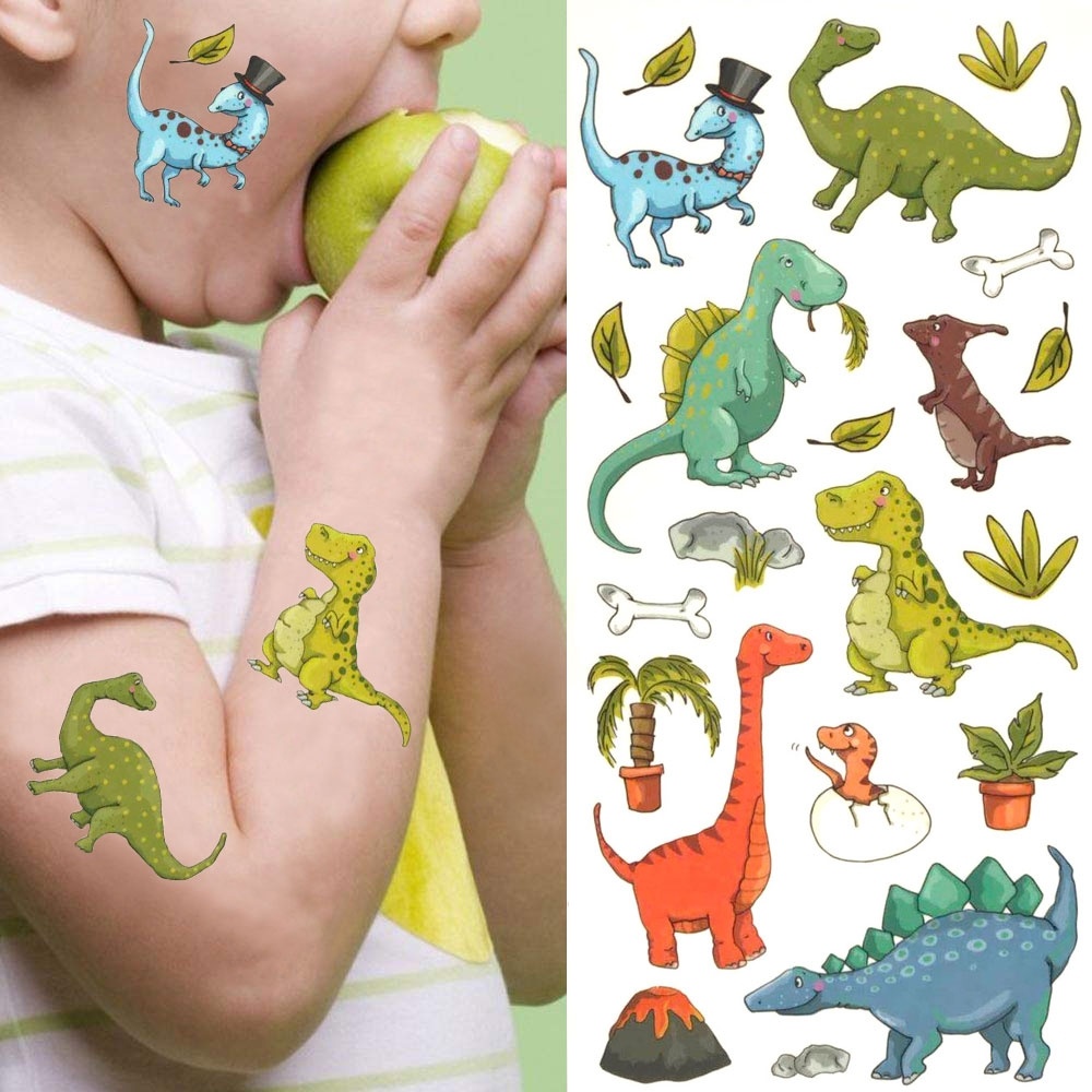 Cartoon Cute Kid Arm Waterproof Jurassic Dinosaur Tattoo Stickers Boy Body Face Temporary Tattoo Dinosaur Fake Tattoo Decals