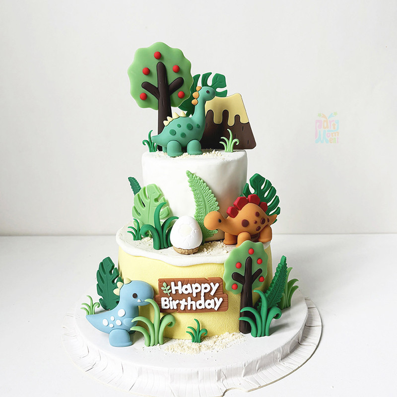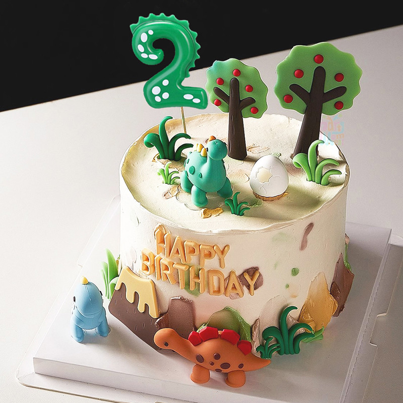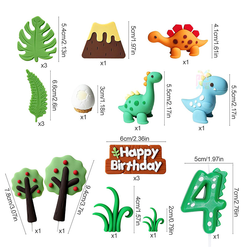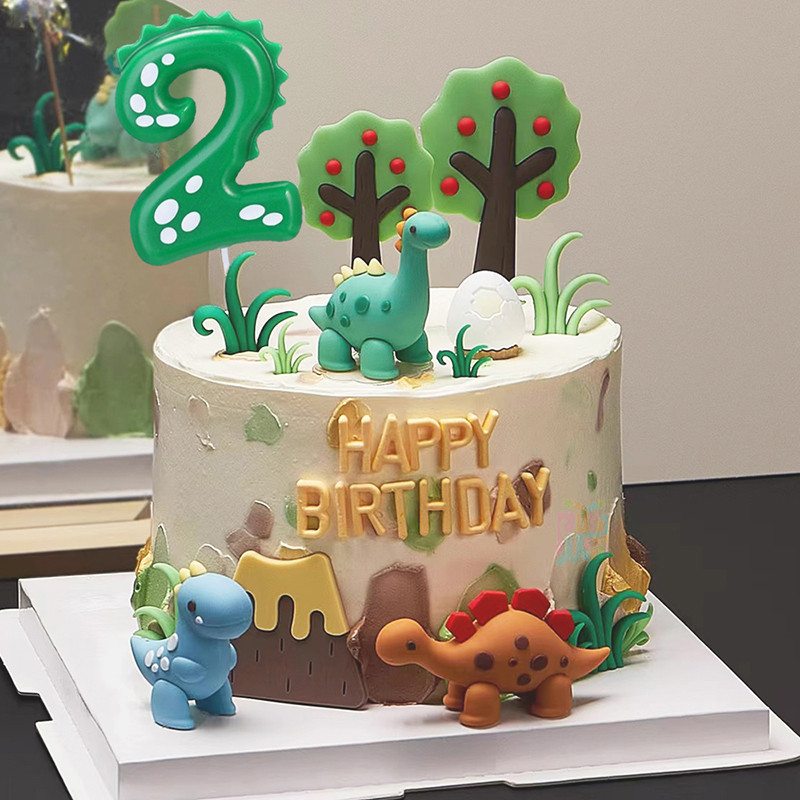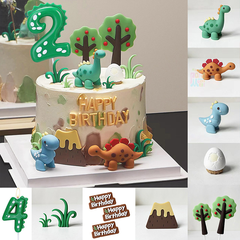 Cartoon Dinosaur Cake Topper Forest Leaf Fruit Tree Dino Egg Gass Volcano Soft Rubber for Birthday Cake Decor