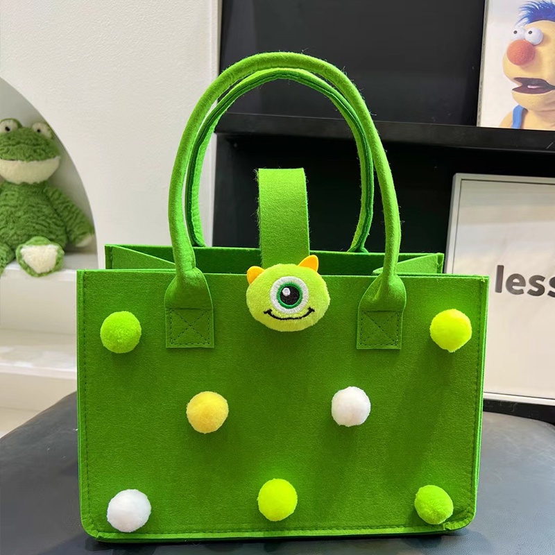 Cartoon Felt Bag Women Tote Bags Cute Small Felt Ball Series Solid Color Hand-held Felt Bag