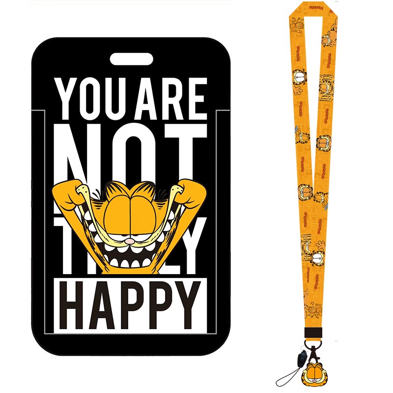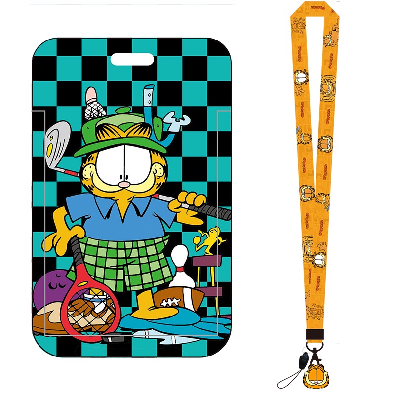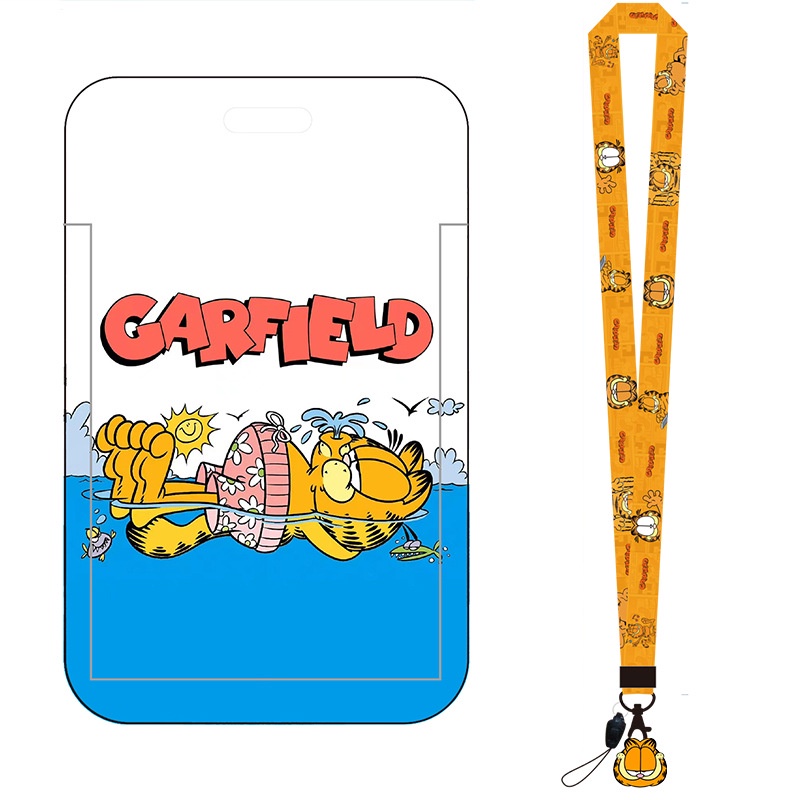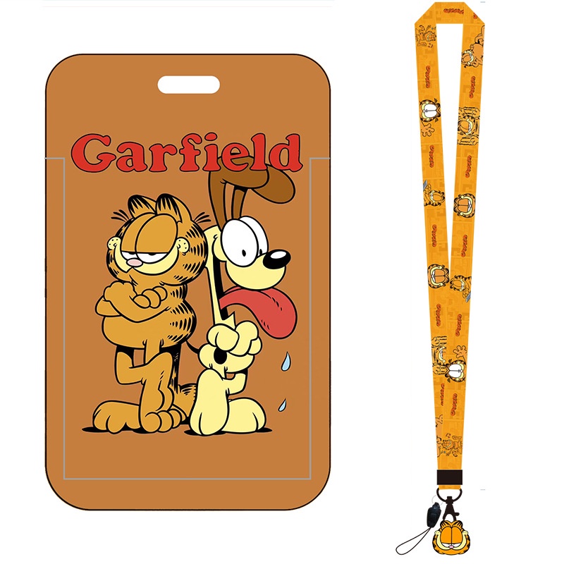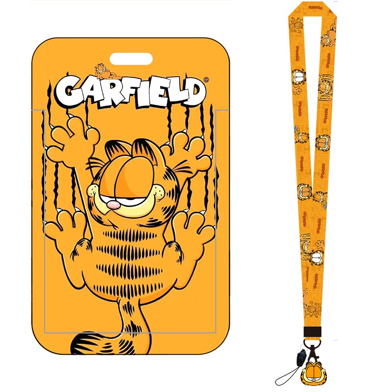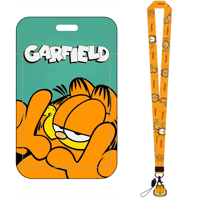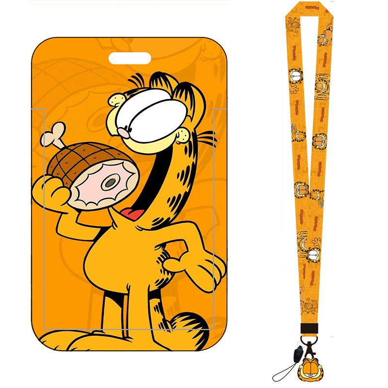 Cartoon Garfield ID Card Protector Lanyard ID Card Badge Holder Mobile Phone Card Case