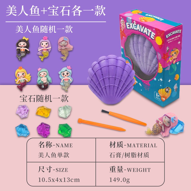 Cartoon Gemstone Digging Toys Treasure Hunt Mermaid Digging Kit Discover Gems Collectibles Blind Box for Kids Educational Toys