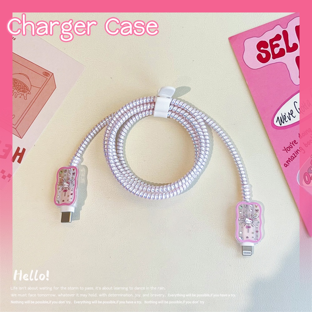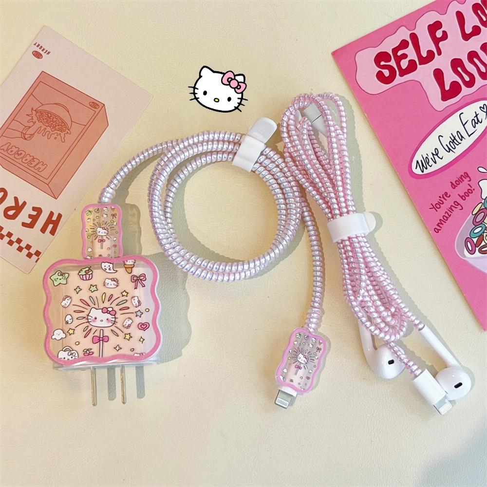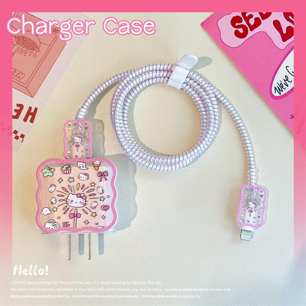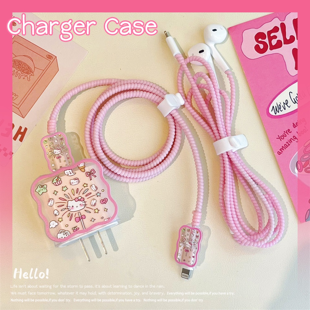 Cartoon KT Cat Charger Cover for IPhone 20W Adapter Shockproof Protective Case for USB Cable Spiral Sleeve Data Line Winder
