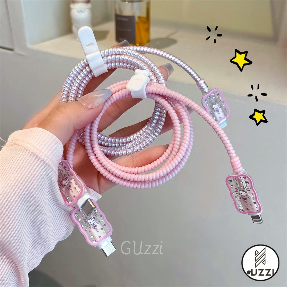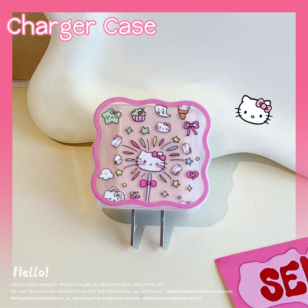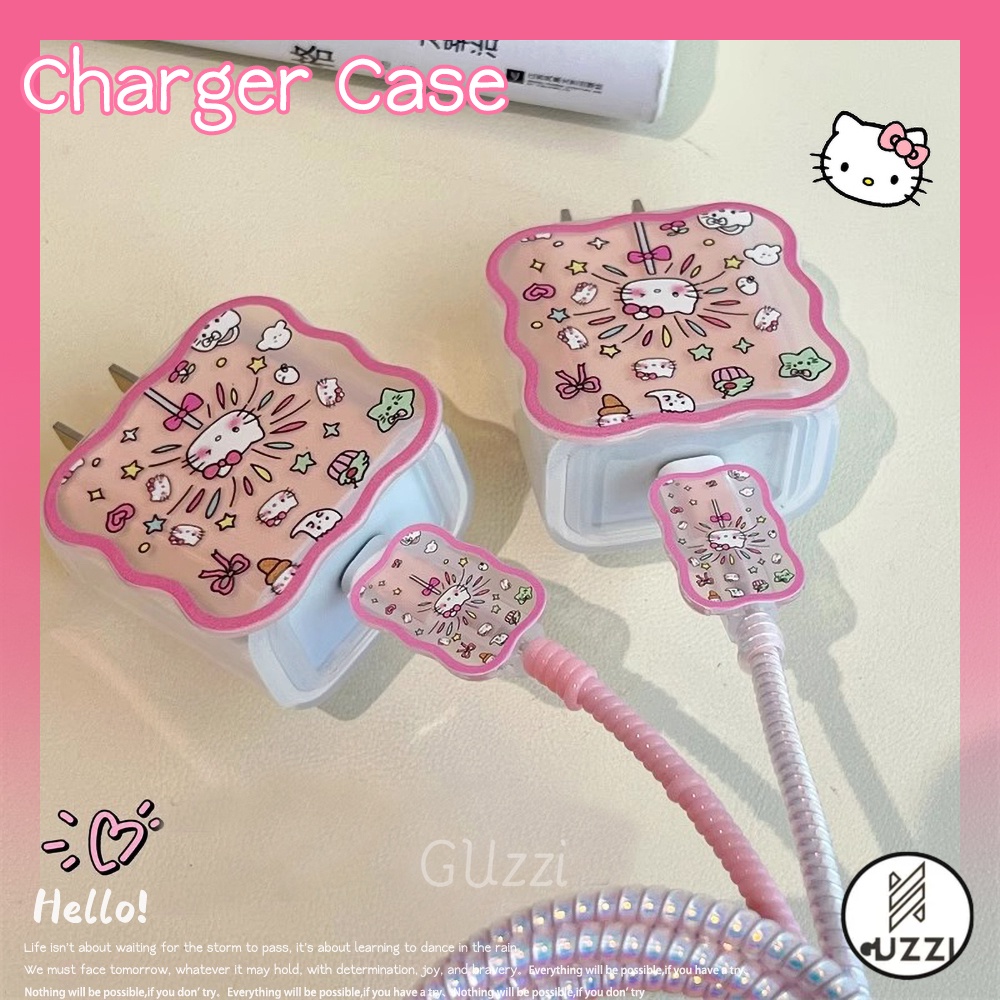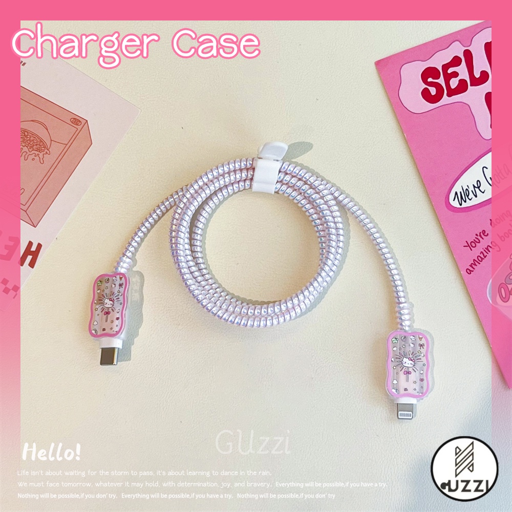 Cartoon KT Cat Charger Cover for IPhone 20W Adapter Shockproof Protective Case for USB Cable Spiral Sleeve Data Line Winder