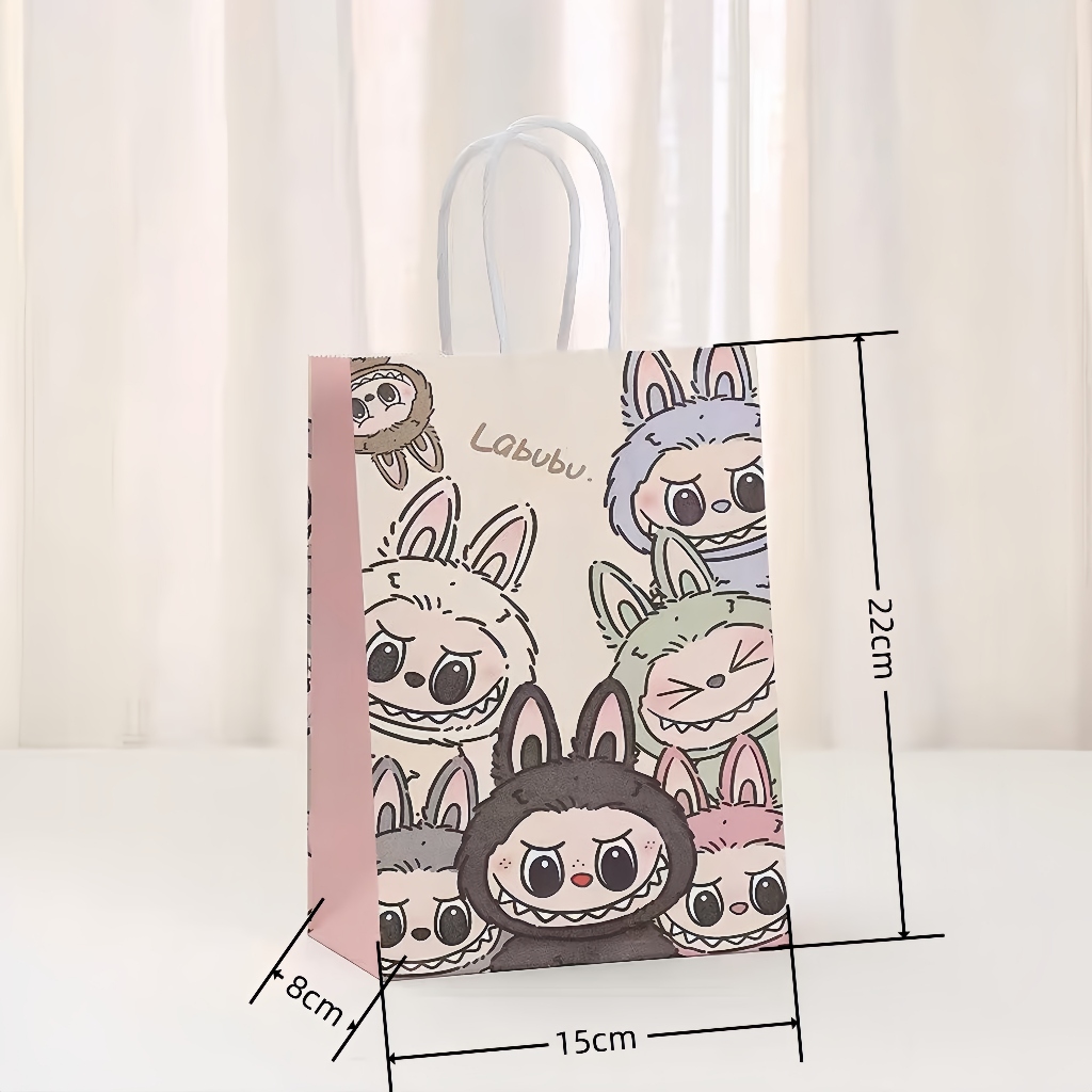 Cartoon Labubu Creative Paper Bag for Kids Gift Birthday Bags Plain Rope Handle Hand Bag