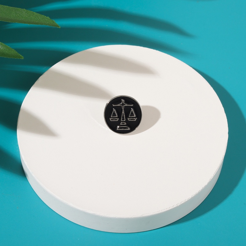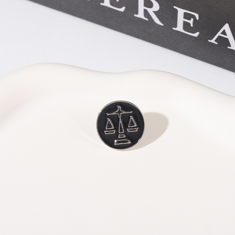 Cartoon Lawyer Logo Brooch Pin Justice Balance Badge Constellation Black Silver Gothic Brooch Metal Lapel Badges Jewelry Gift