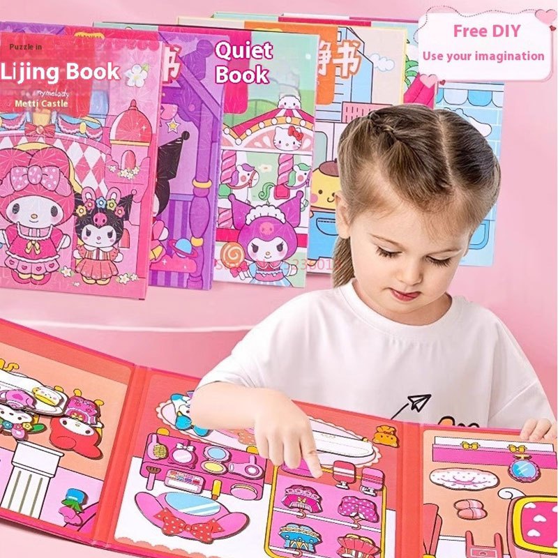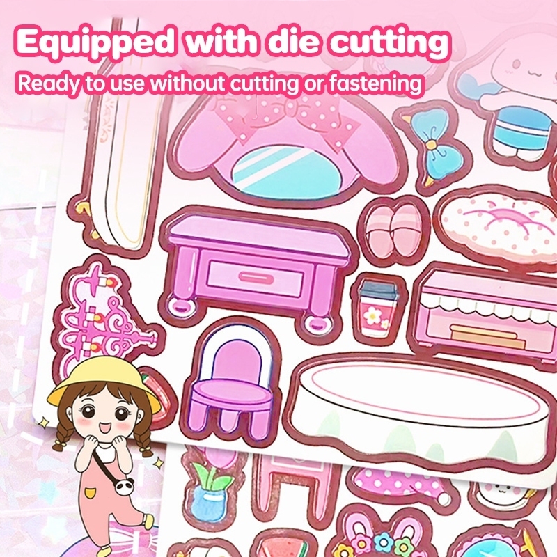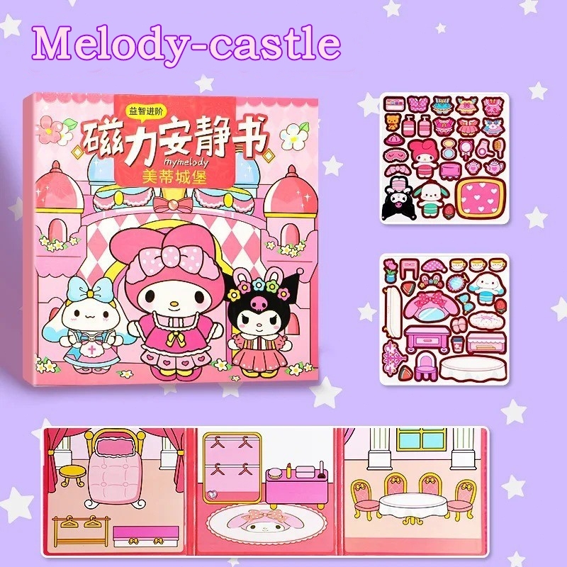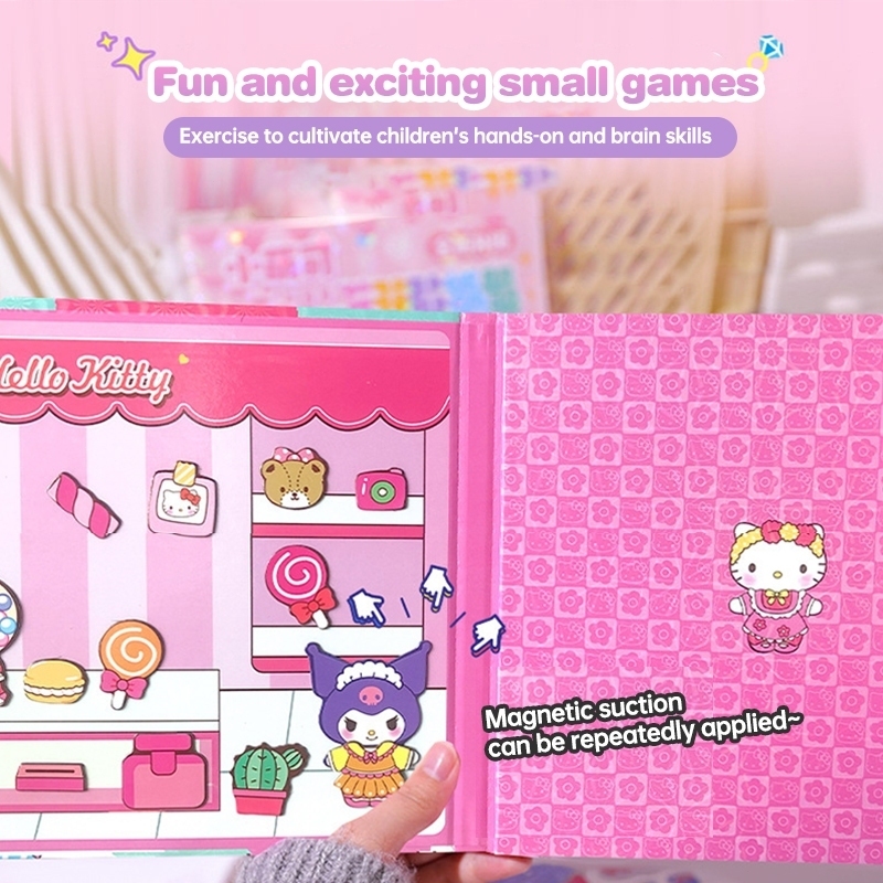 Cartoon Magnetic Kuromi Paper Doll House Book Set Dres Up Sticker Books for Sanrio Stickers