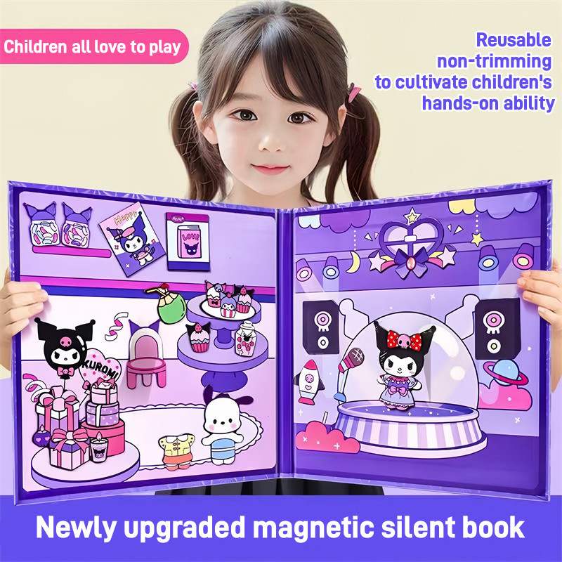 Cartoon Magnetic Kuromi Paper Doll House Sanrio Quiet Book Dres Up Sticker Books Sanrio Sticker Book
