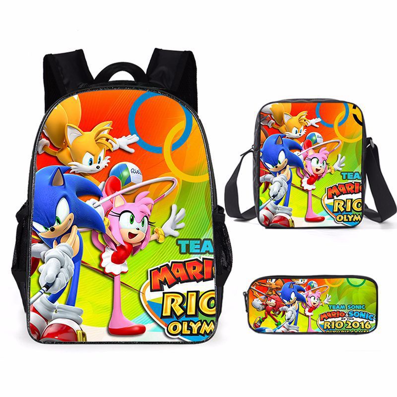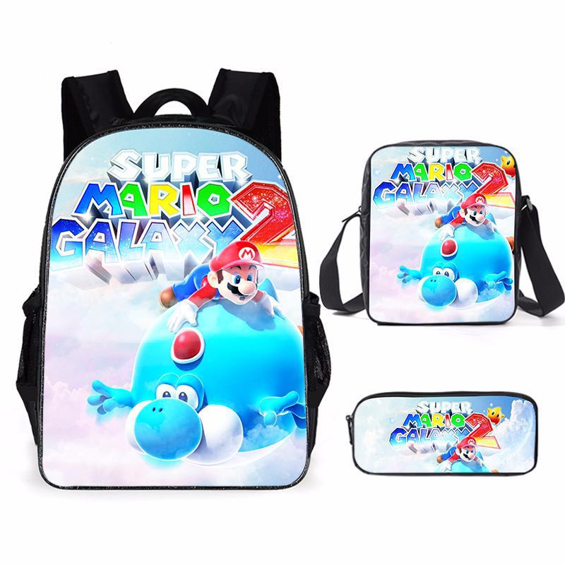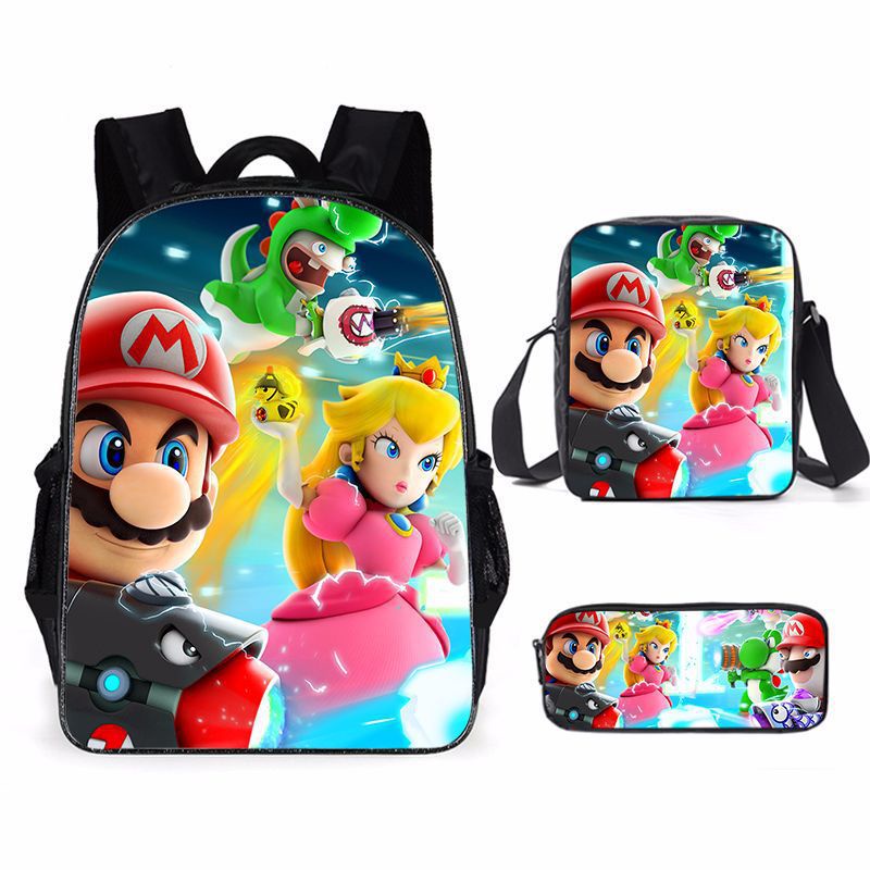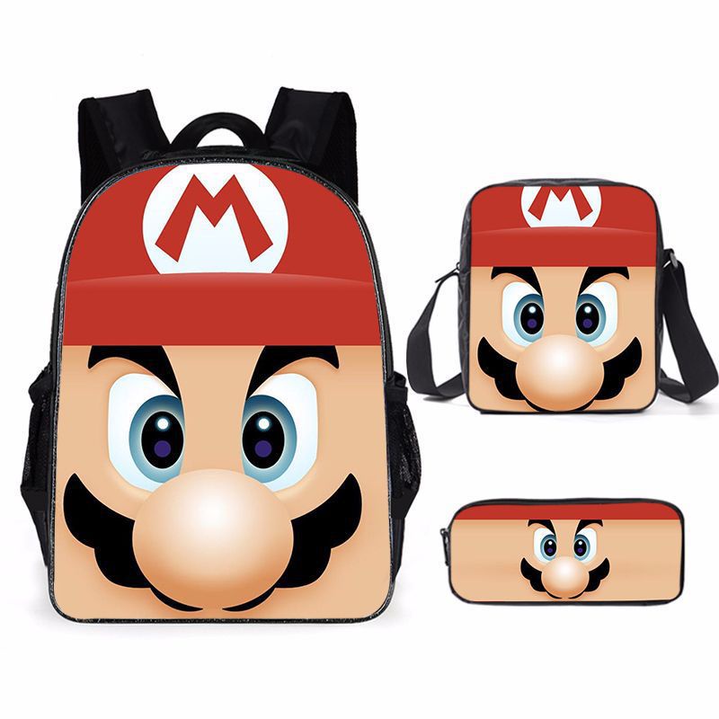 Cartoon Mario Three-piece Printed School Bag Primary and Secondary School Students Backpack Super Mario Backpack Sports Backpack Lightening zipper shoulders outdoor bag