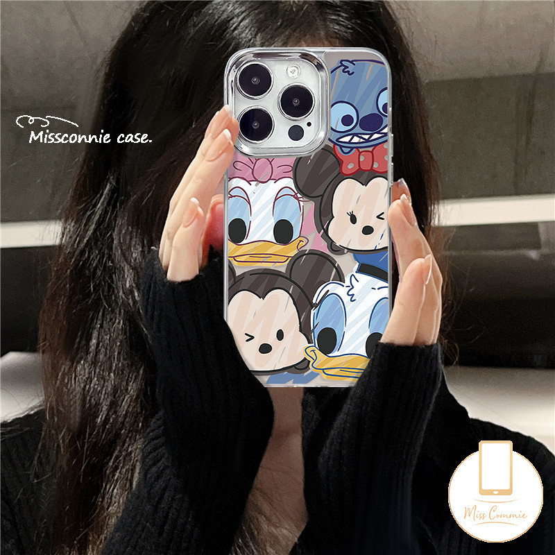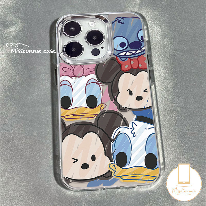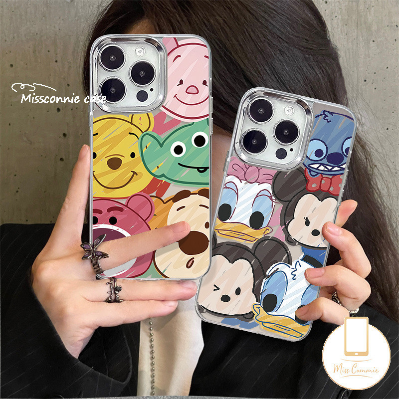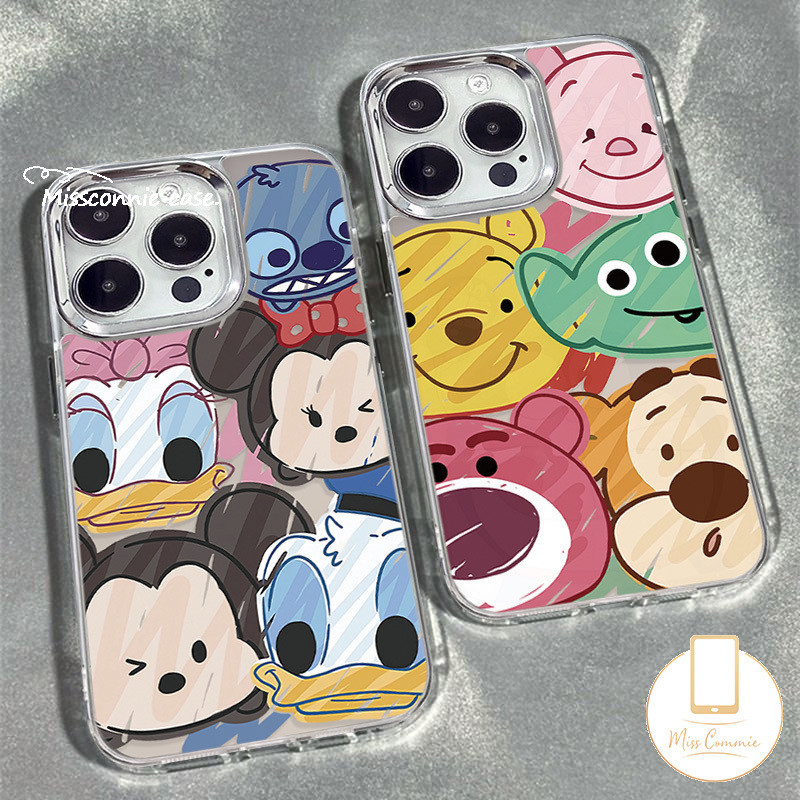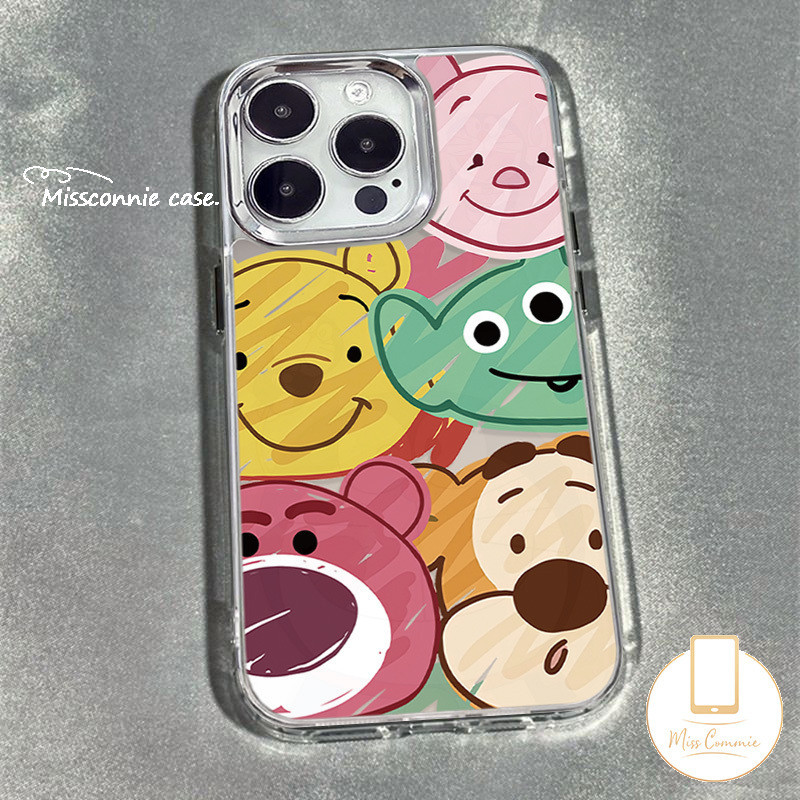 Cartoon Mickey Monster Alien Lotso Winnie The Pooh Case Compatible for IPhone 11 15 13 12 14 Pro Max 7Plus XR 8 7 15 6S 6 Plus 8Plus X XS Max SE 2020 Luxury Plating Metal Lens Case