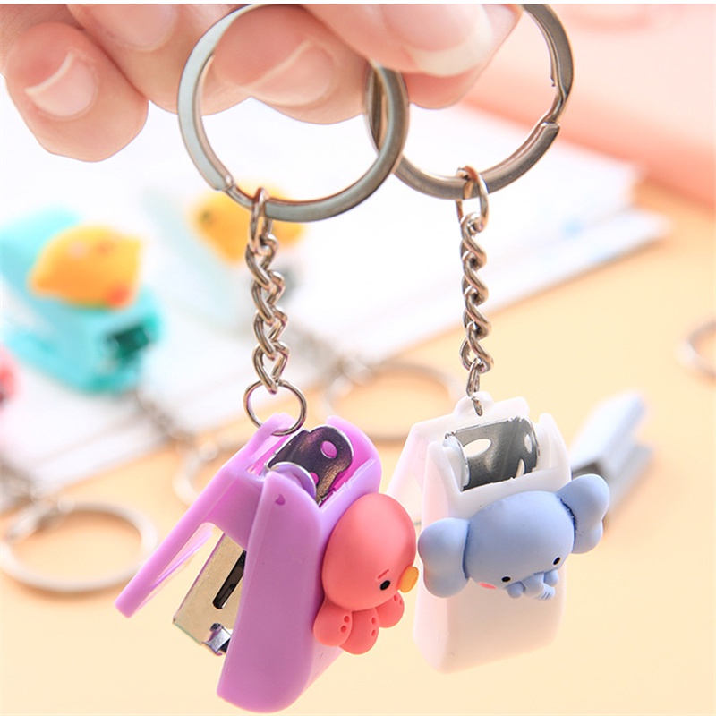 Cartoon Mini Stapler Portable Cute Stapler Student Office Mini Small Stapler with Keychain