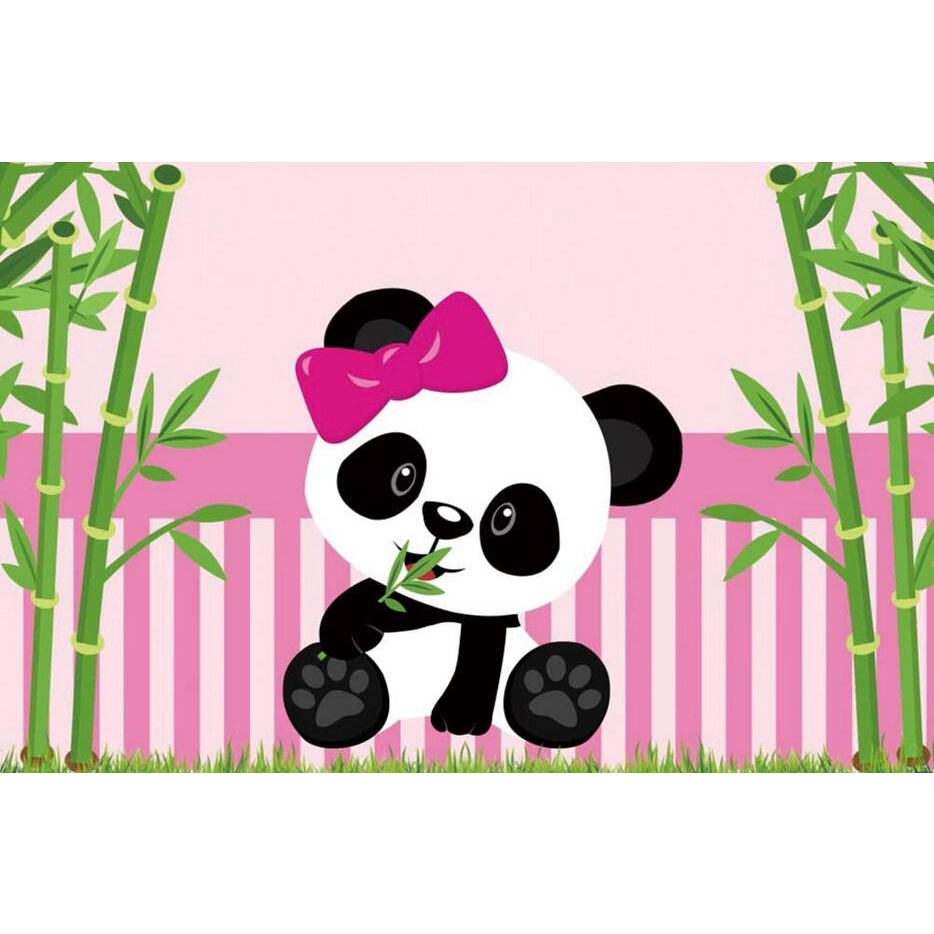 Cartoon Panda Happy Birthday Backdrop Green Bamboo Panda Theme Baby Shower Photo Background Kids Children Newborn Birthday Party Decorations Cake Table Decorations 150*100cm