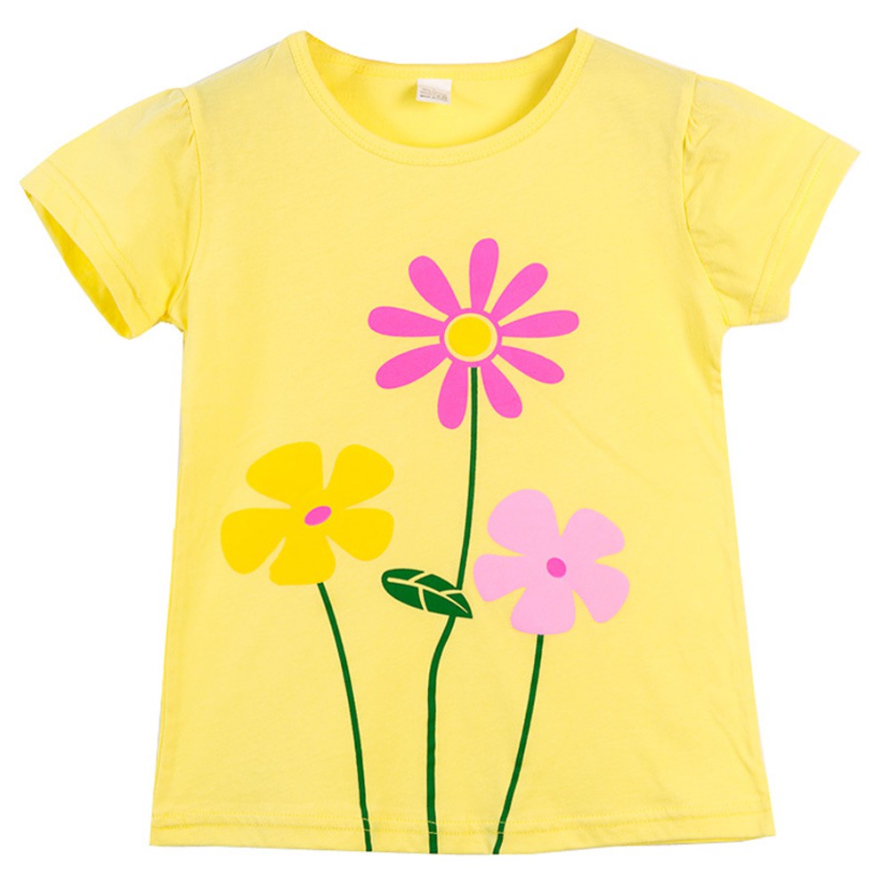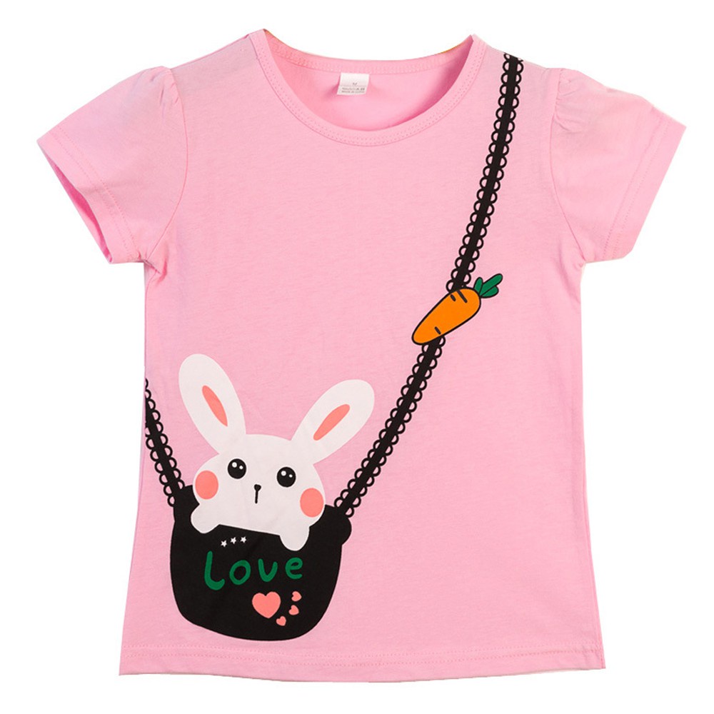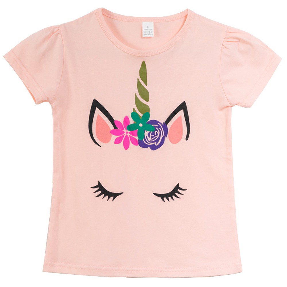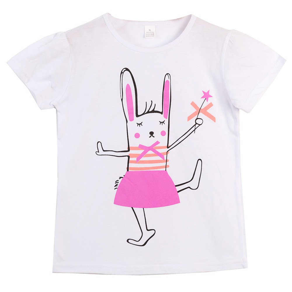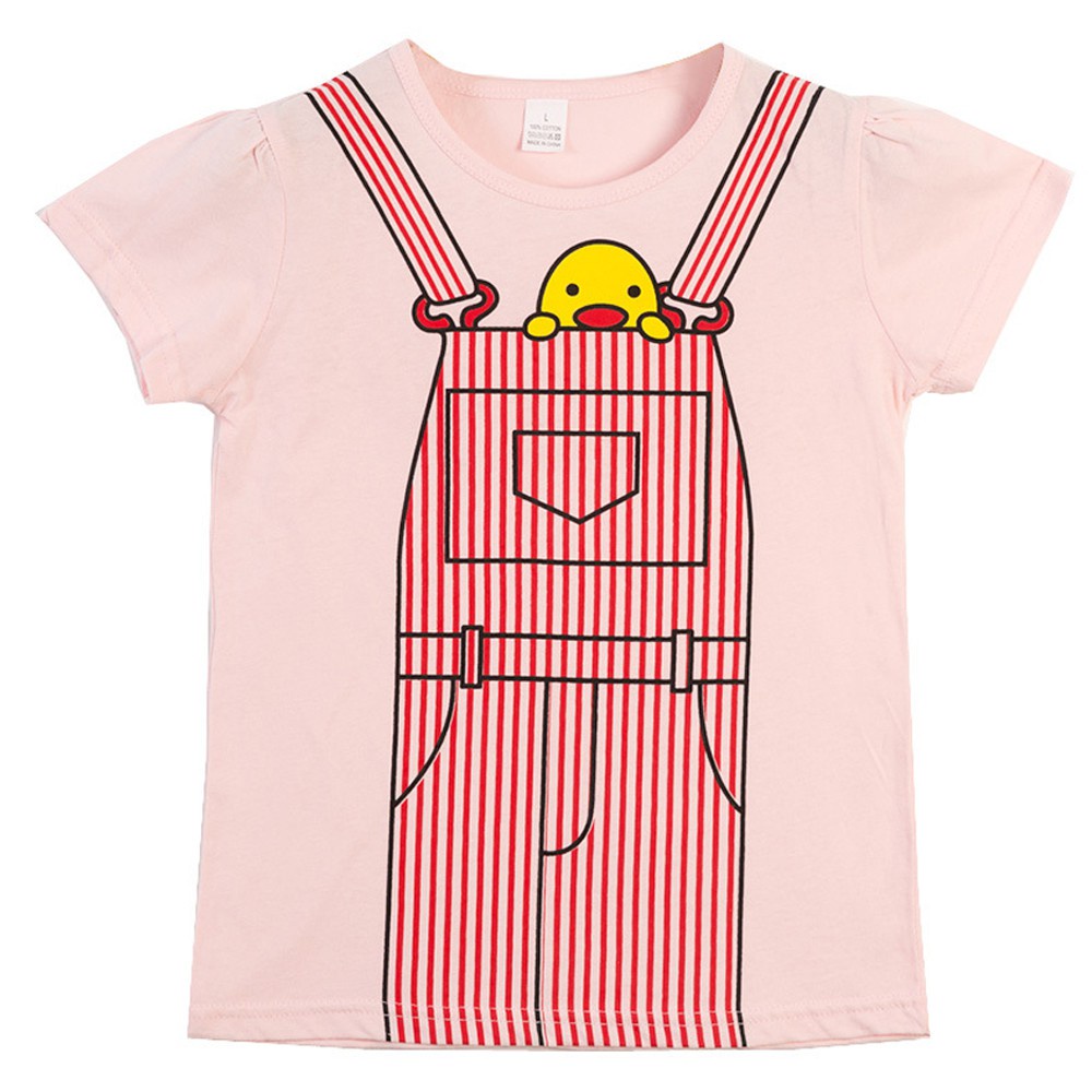 Cartoon Pattern Kids Girl T-Shirt Round Neck Giraffe Printed Casual Cotton Kids Top