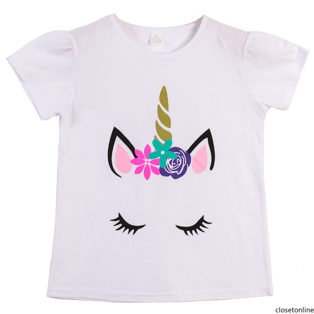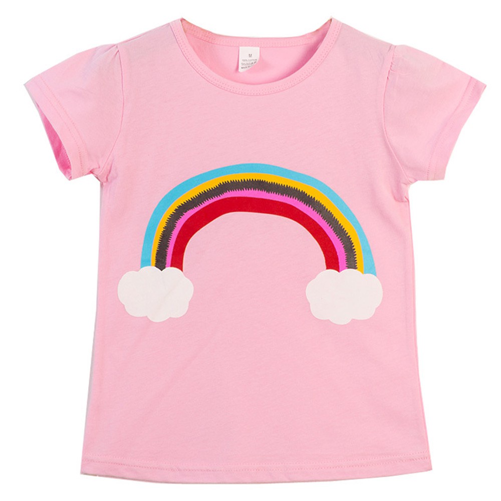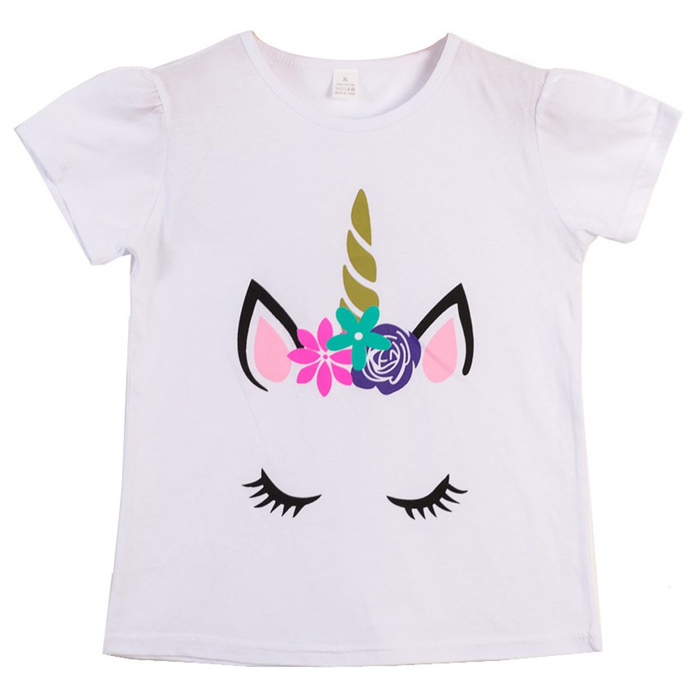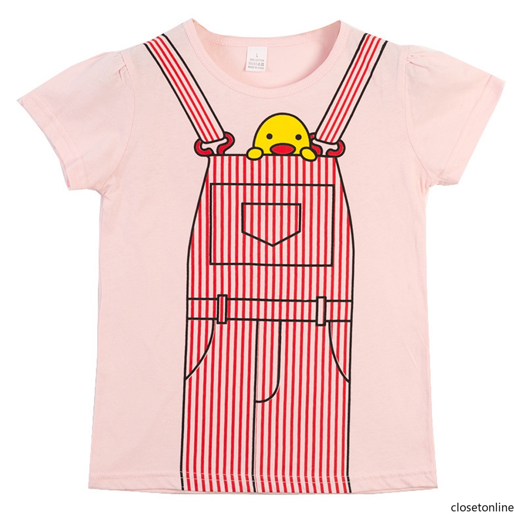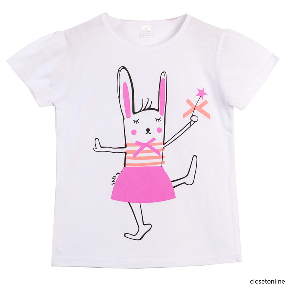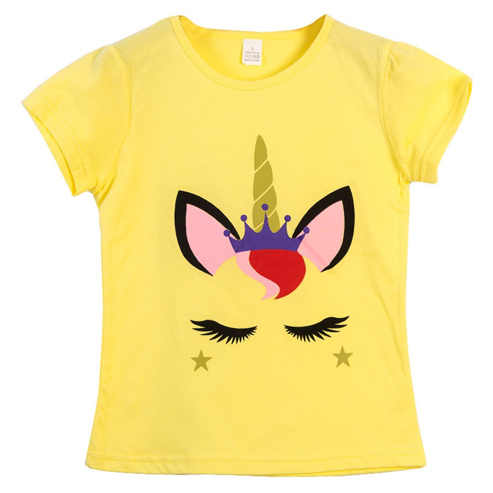 Cartoon Pattern Kids Girl T-Shirt Round Neck Giraffe Printed Casual Cotton Kids Top