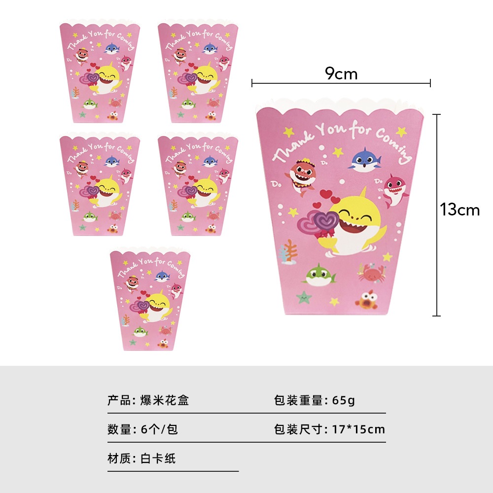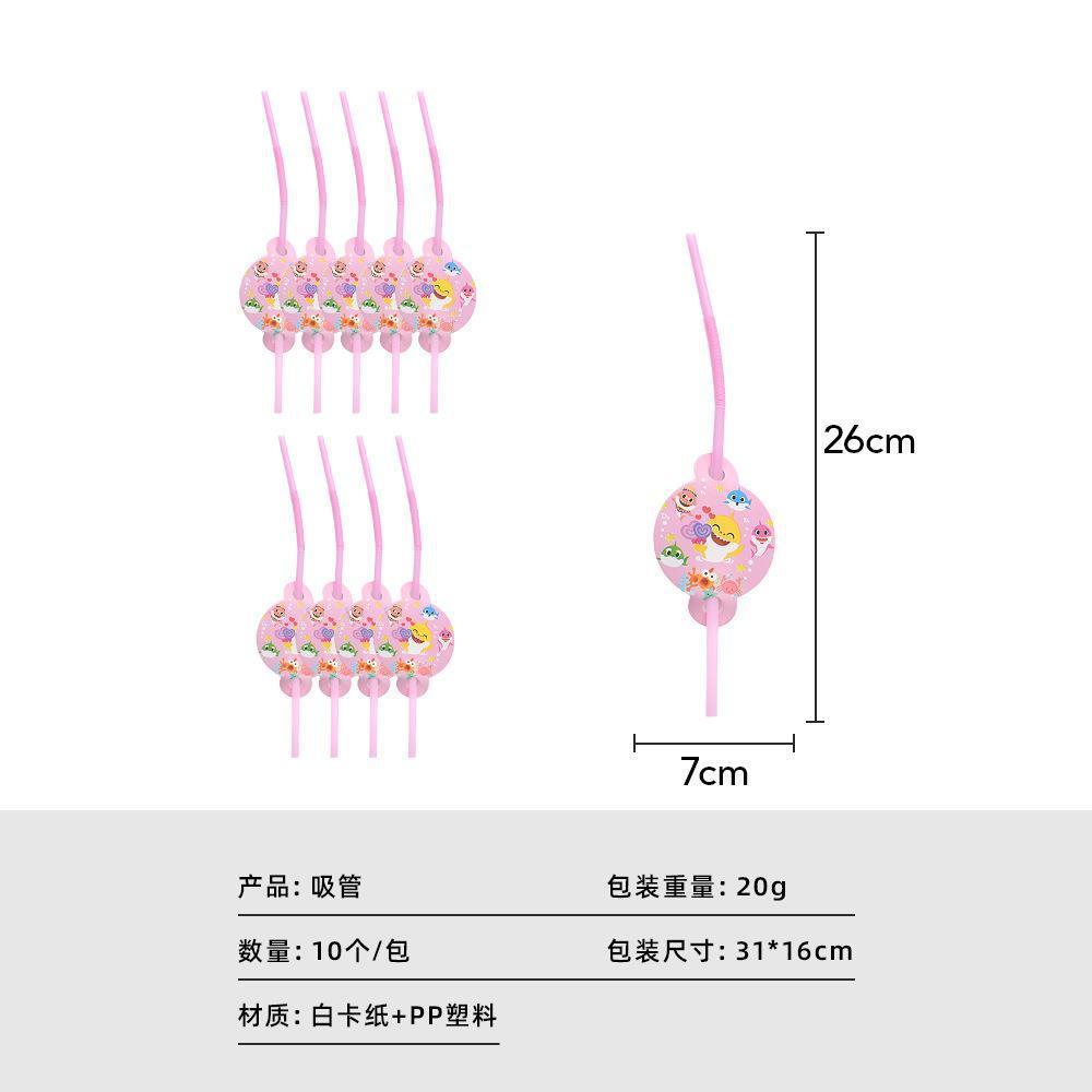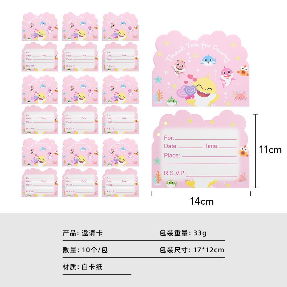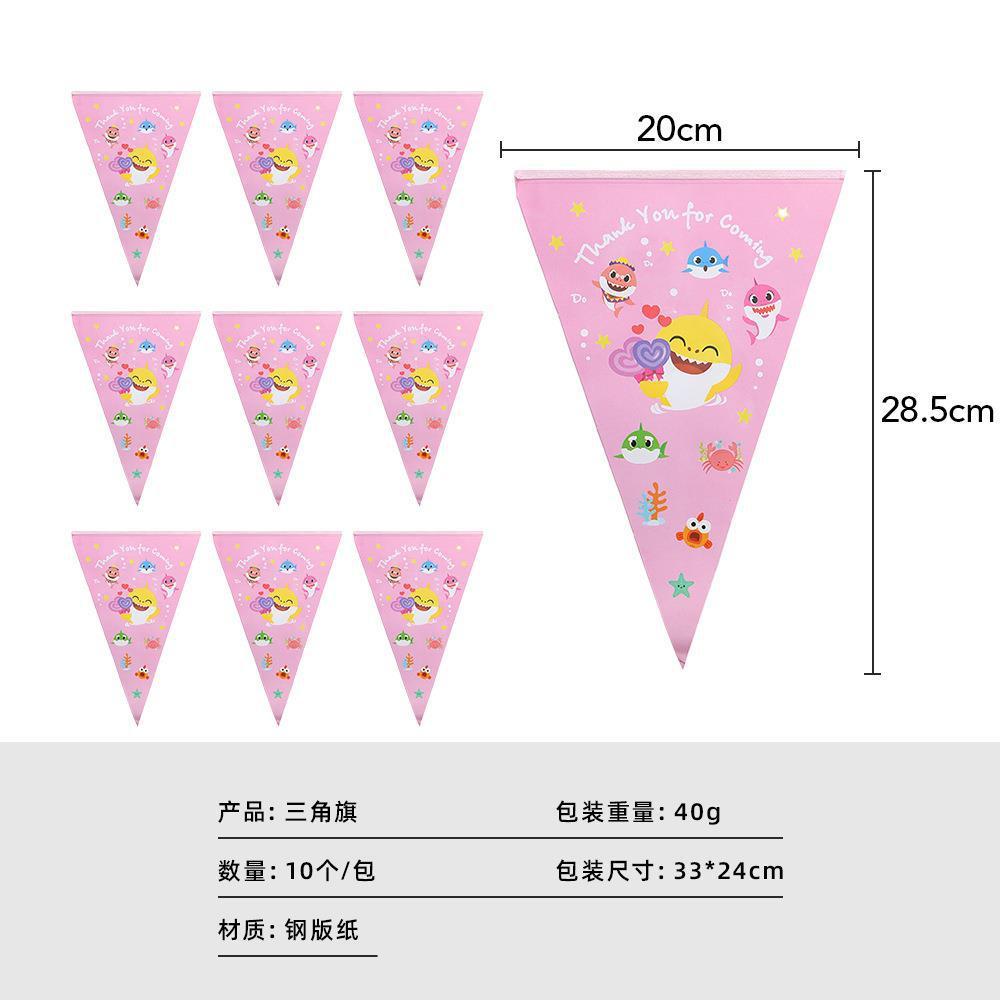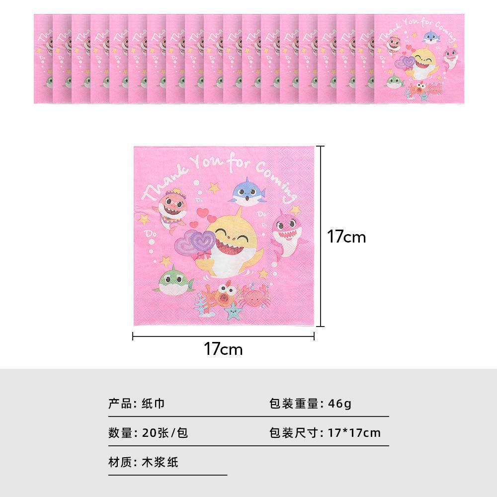 Cartoon Pink Shark Baby Children's Birthday Party Decor Paper Plate Cup Disposable Tableware Banner Gift Bag Hat Horn Invitation Card Popcorn Box Sharkbaby Theme Baby Shower Decor