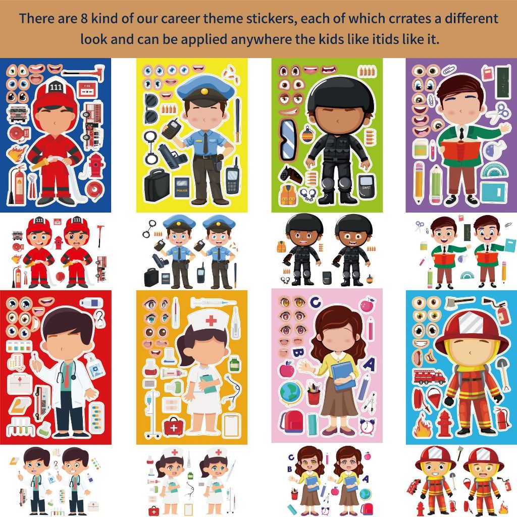Cartoon Professional Dress up Stickers for Teachers, Nurses, Doctors, Police, Parent Child Interaction Stickers, Puzzles, DIY Face Stickers