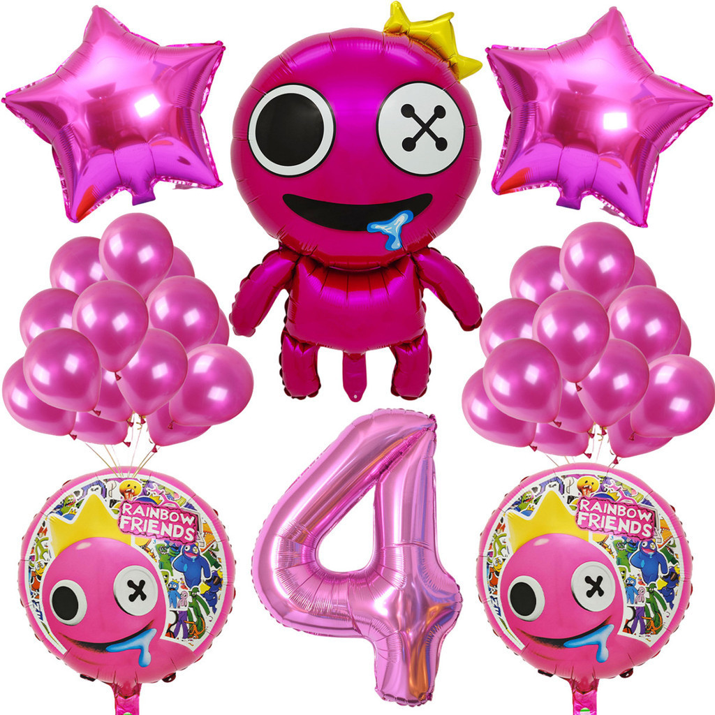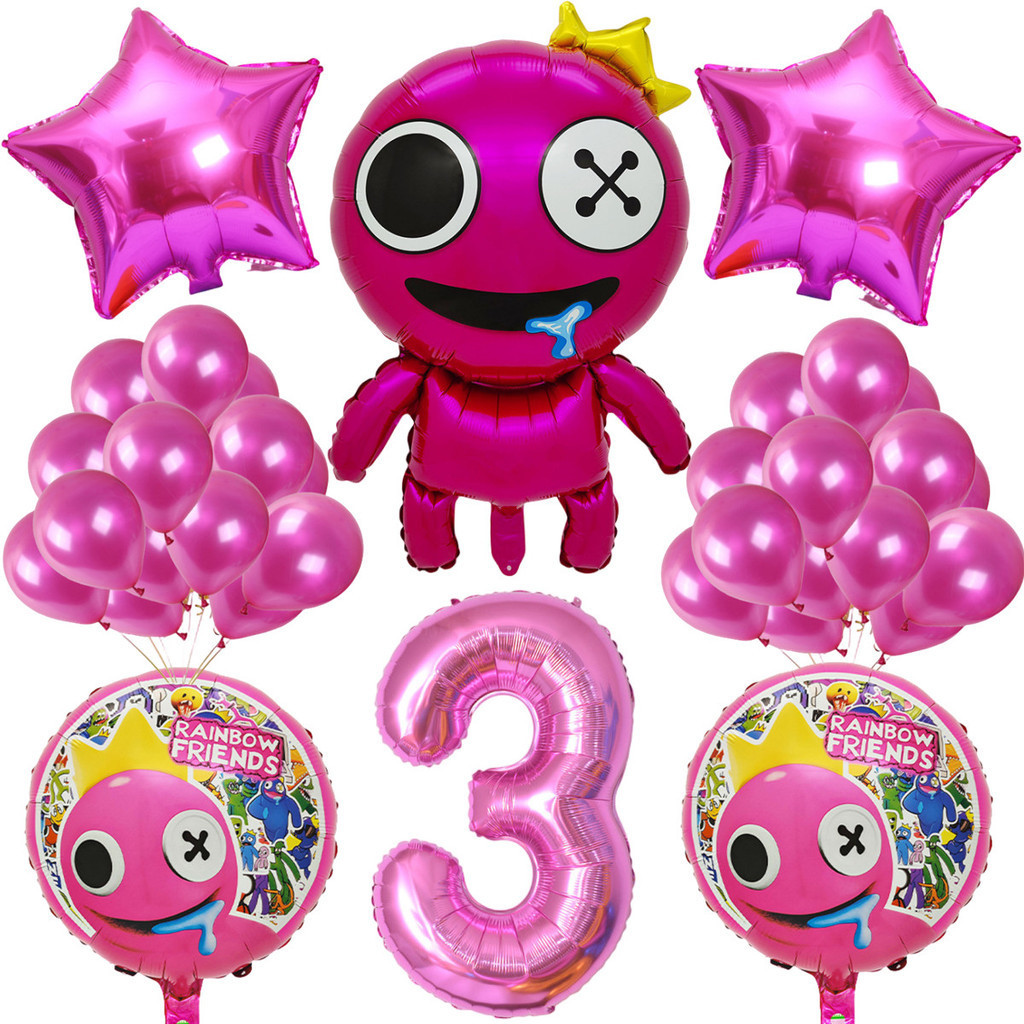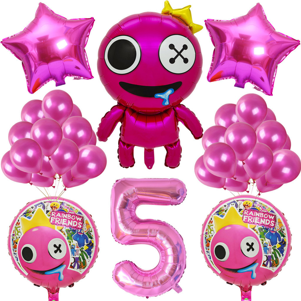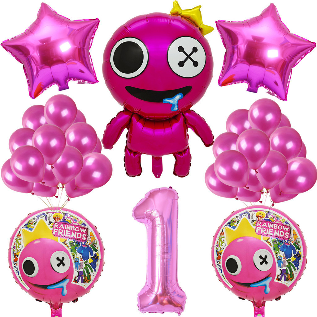 Cartoon Rainbow Friends Children's Birthday Party Decoration Set Rose Red Friend Pink Number Foil Baby Shower Party Needs