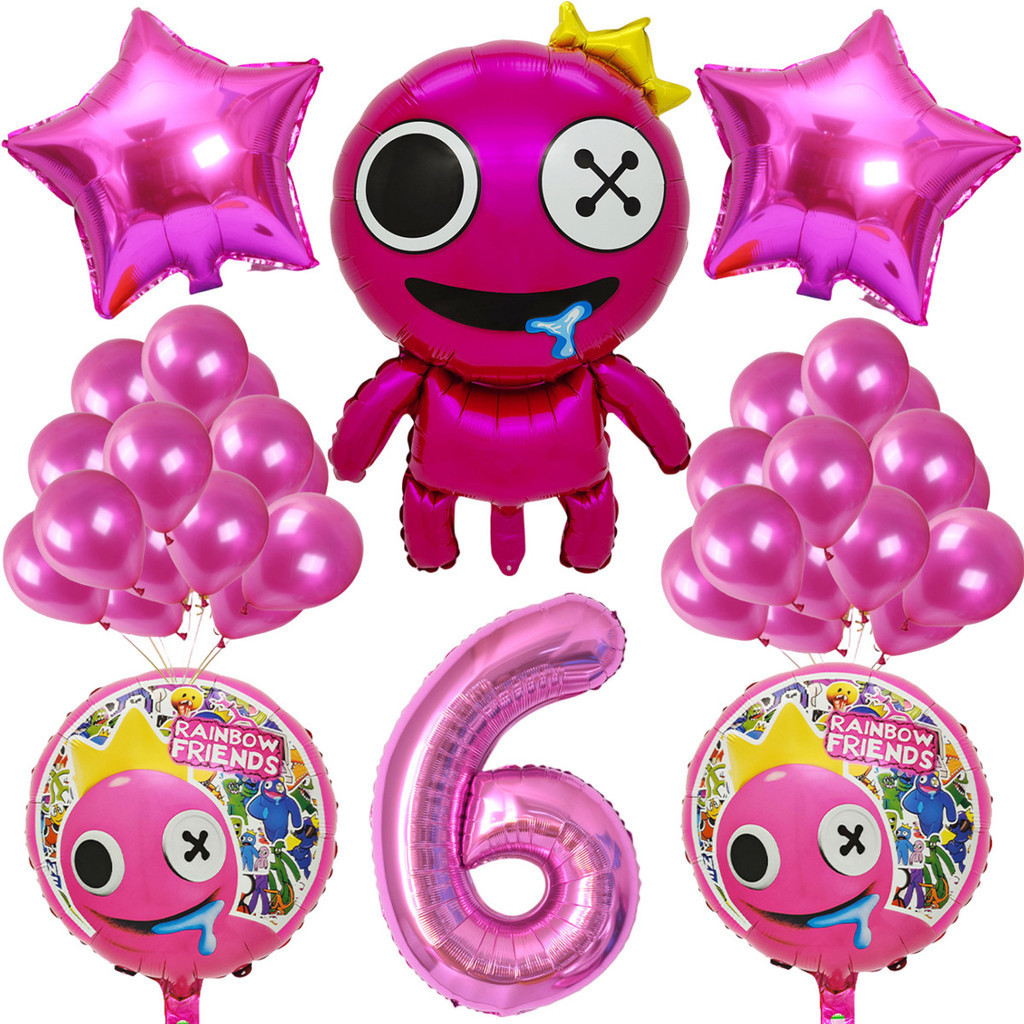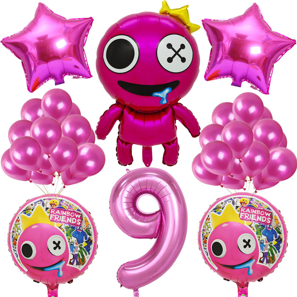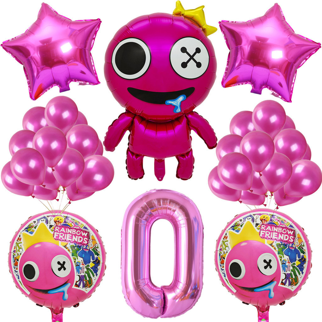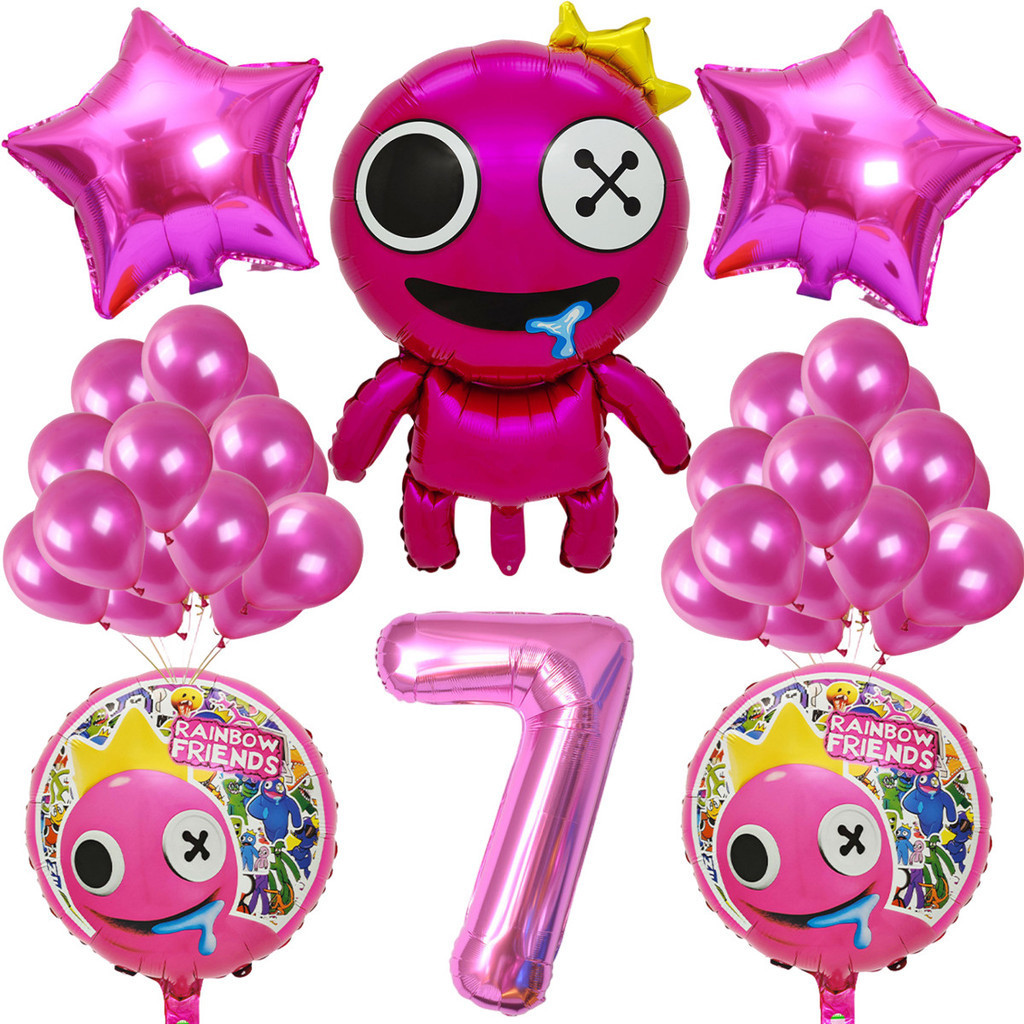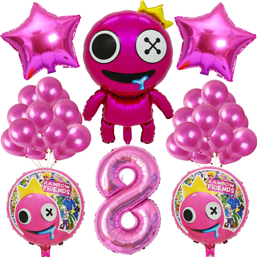 Cartoon Rainbow Friends Children's Birthday Party Decoration Set Rose Red Friend Pink Number Foil Baby Shower Party Needs
