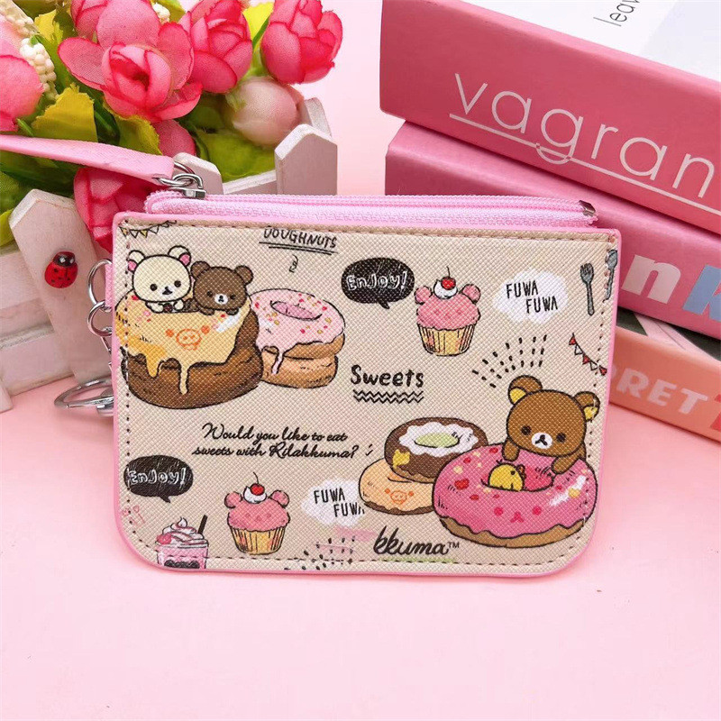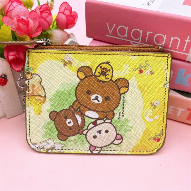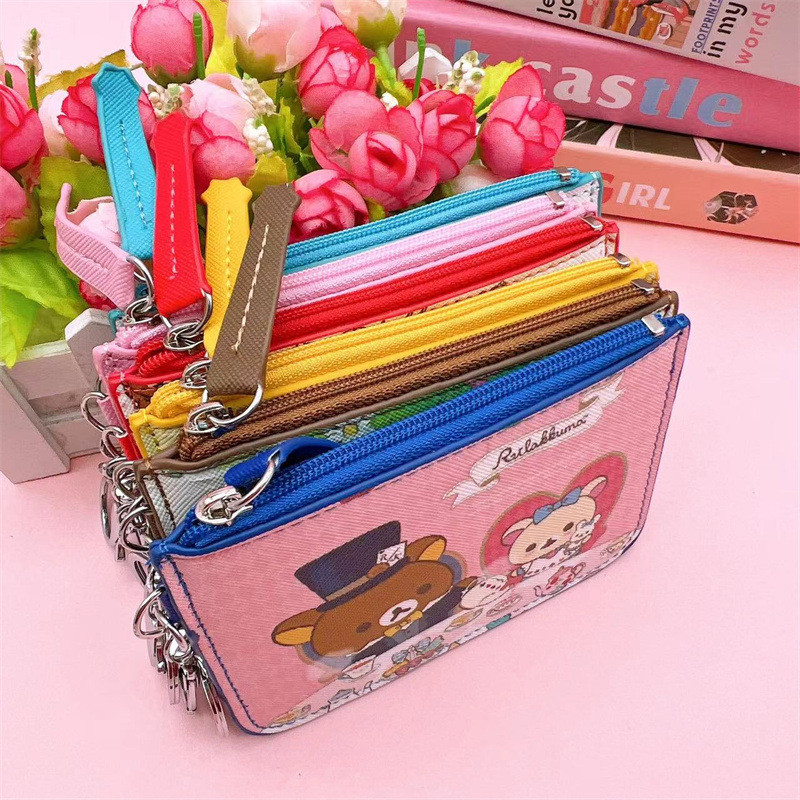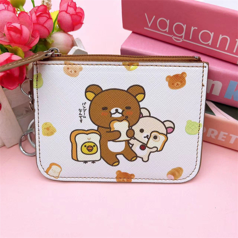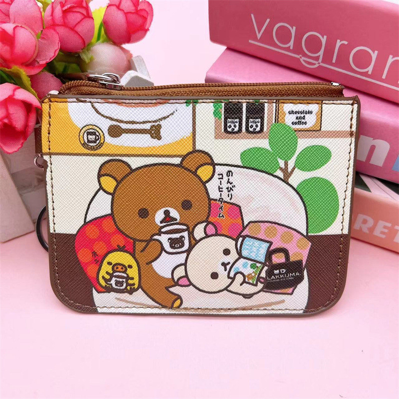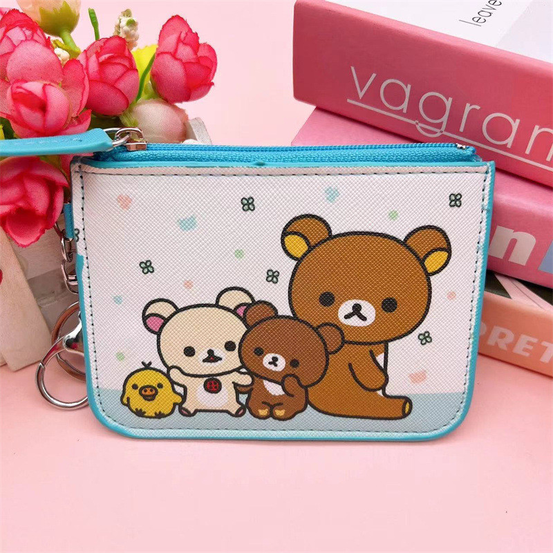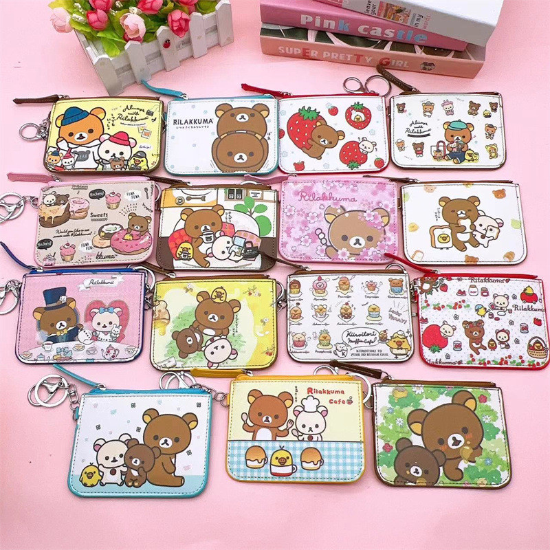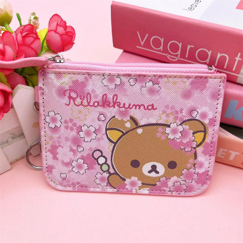 Cartoon Rilakkuma Card Holder Coin Purse Cute Bear Loose Wallet Work Permit Card Holder Badge with Keychain Card Holder