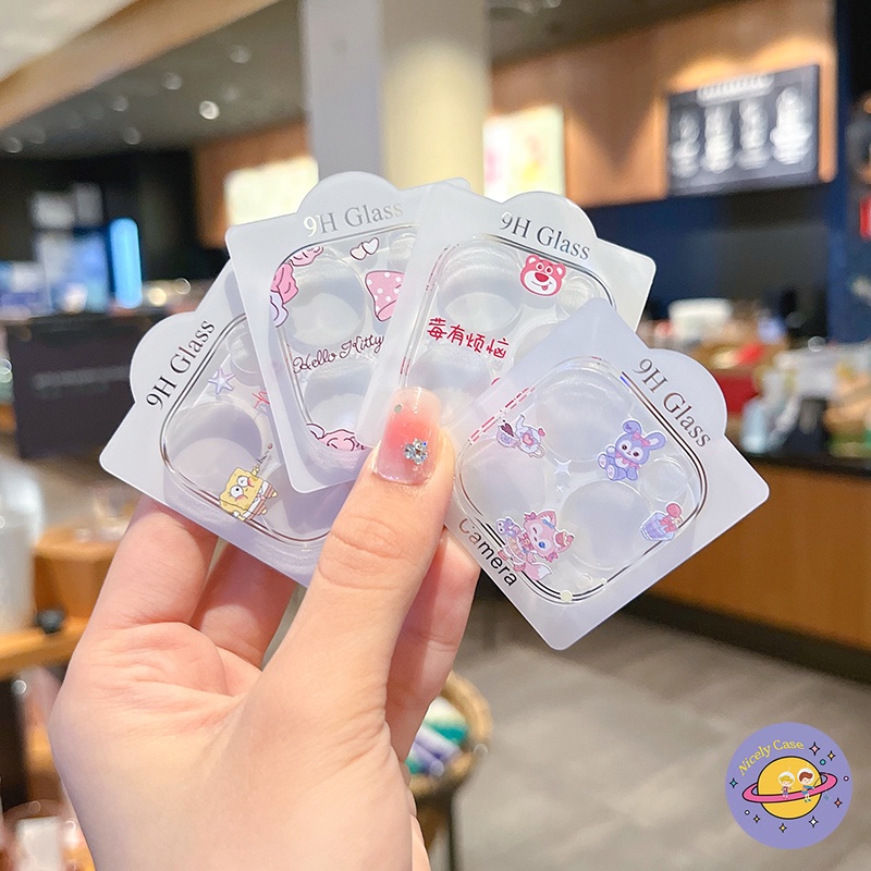 Cartoon Sanrio Melody Hello Kitty Kuromi Crayon Shin-chan Camera Lens Protection Compatible for iPhone 14 13 Pro Max 14Plus 13Mini Transparent Full Cover Tempered Glass Protector