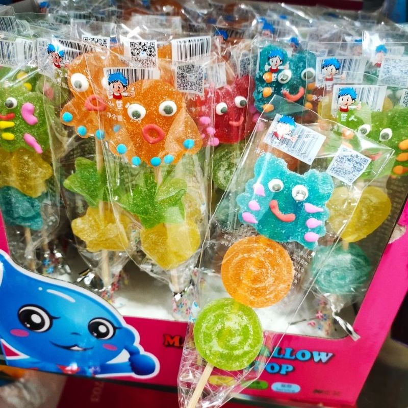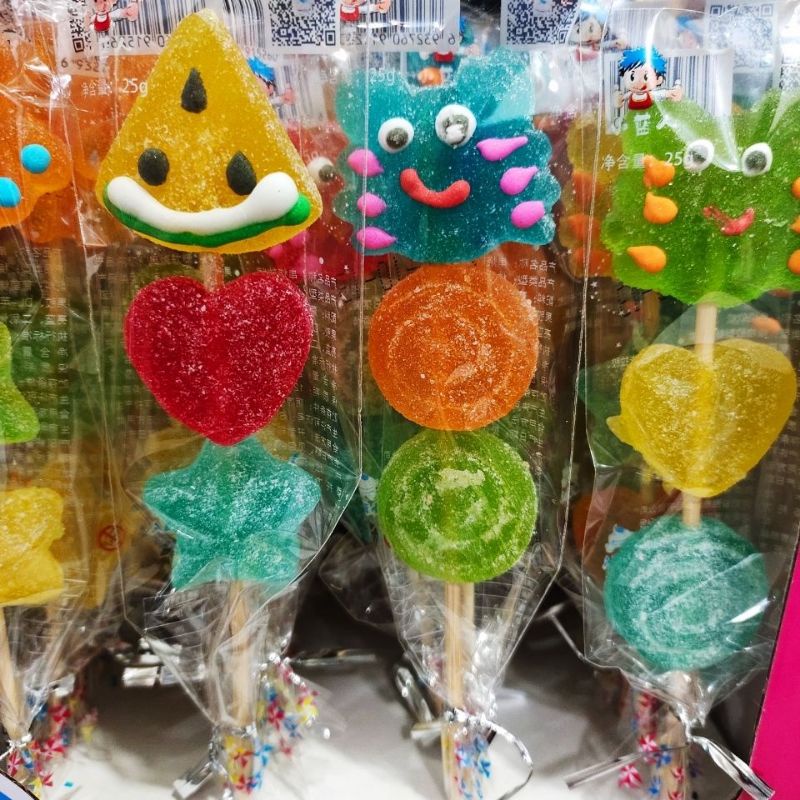 Cartoon Shaped Gummy Lollipop Creative Influencer Candy Fruit Flavored Children's Cake Decoration Christmas (1 Piece)