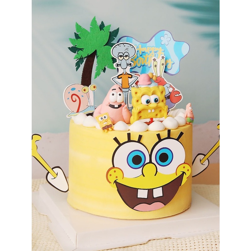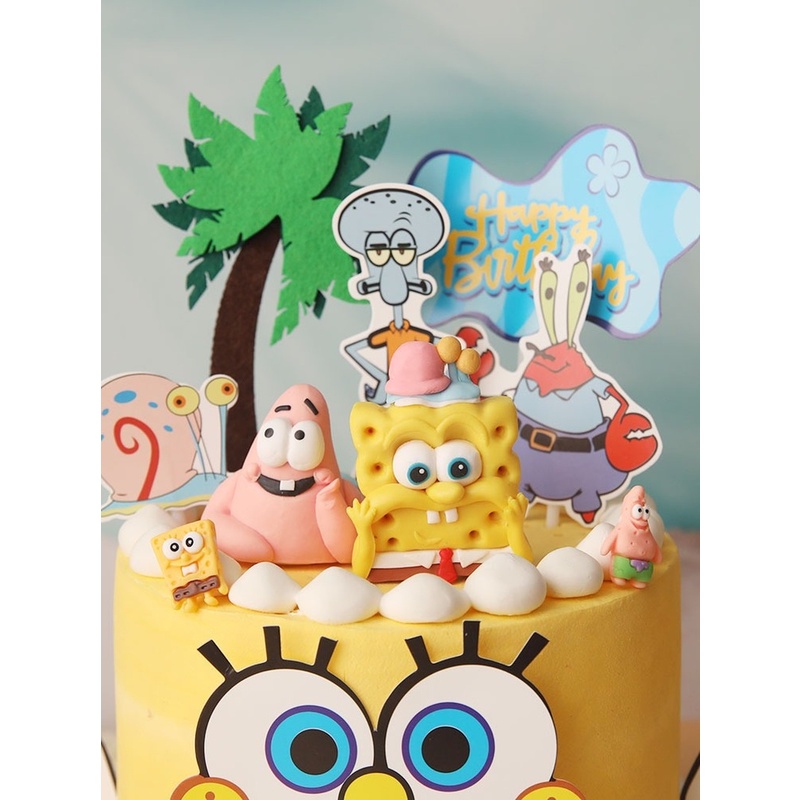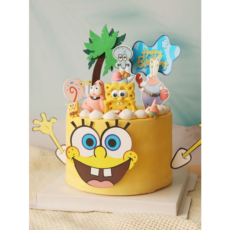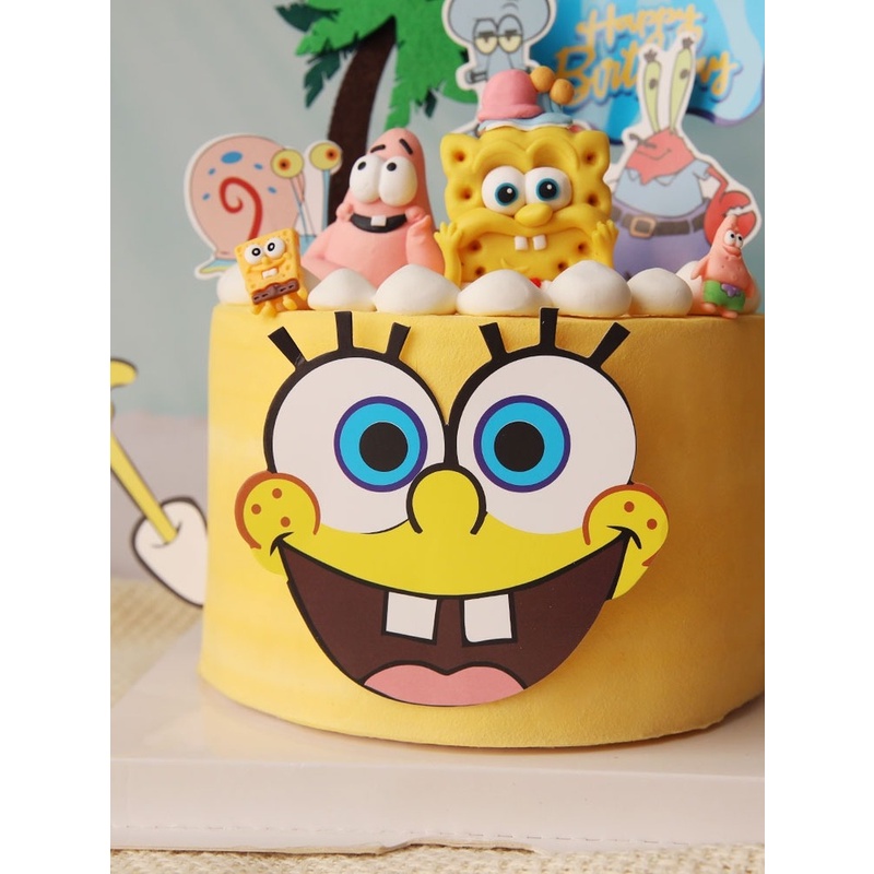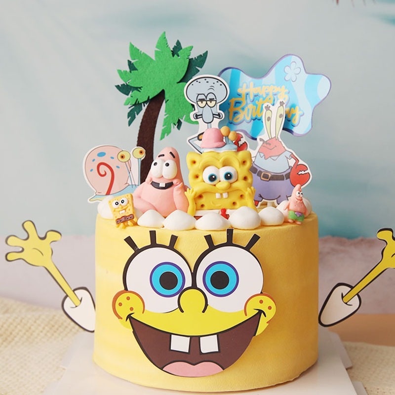 Cartoon SpongeBob SquarePants Themed Cake Decorating Birthday Party Baby Shower First Birthday Cake Decorating Supplies Gift Toys Cake Decorating Supplies