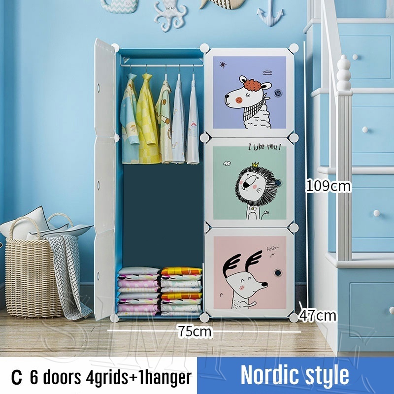 Cartoon Wardrobe Children's wardrobe Baby's Clothes Cabinet DIY Kids Storage Organizer Simple