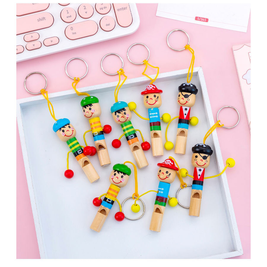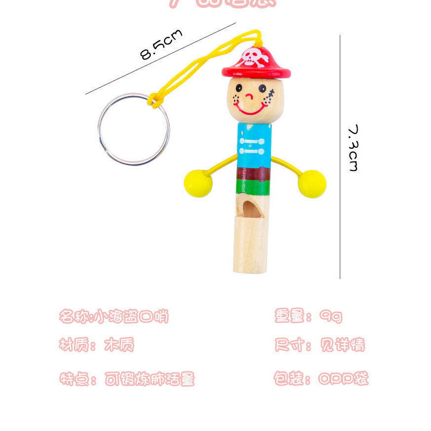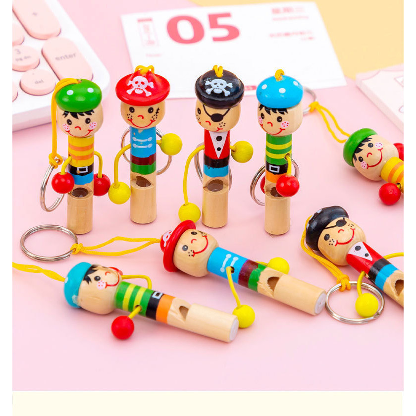 Cartoon Wooden Little Pirate Whistle Toy Children Playing Instrument Small Whistle