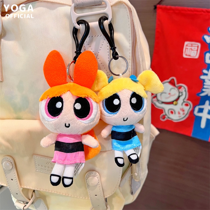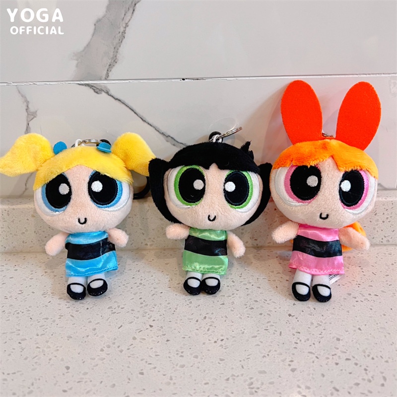 Cartoon anime Powerpuff Girls Plush Toys Keychain Cute Blossom Buttercup Bubbles stuffed Plush dolls Pendant Gifts For Children