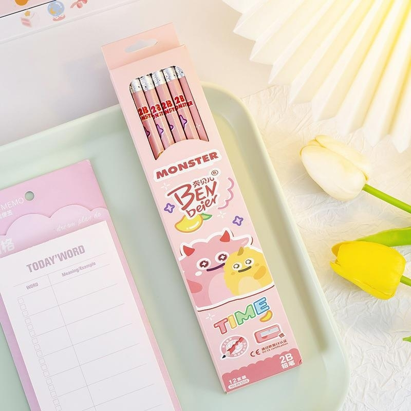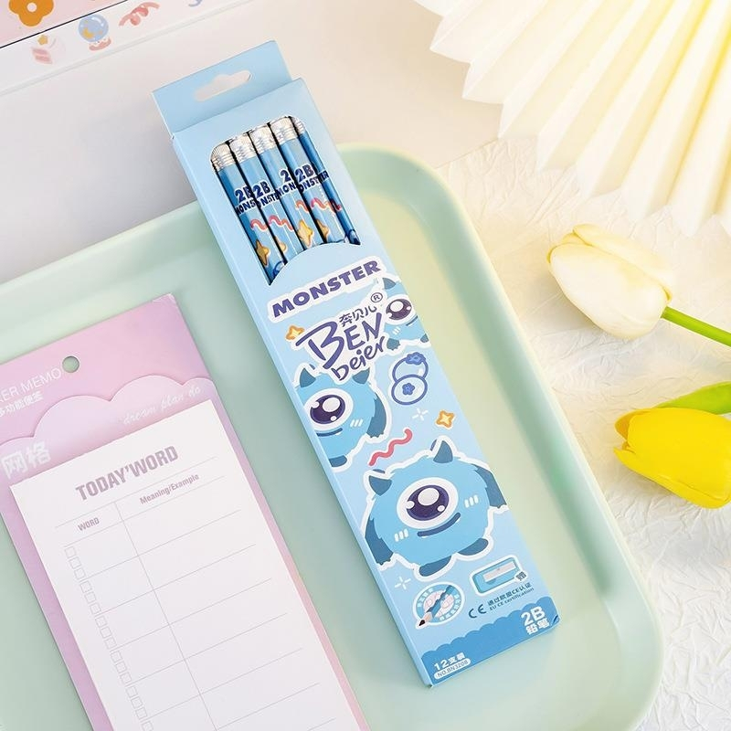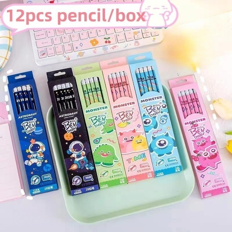 12pcs cartoon 2b pencil set for kids student school supplies stationery