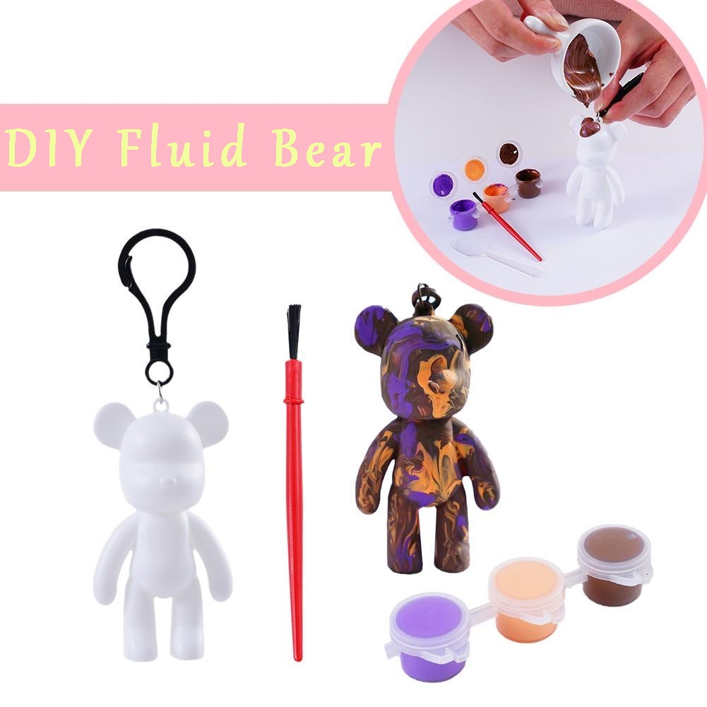 Cartoon coloring plastic doll toy fluid bear white kid's painting handmade diy educational toys gift