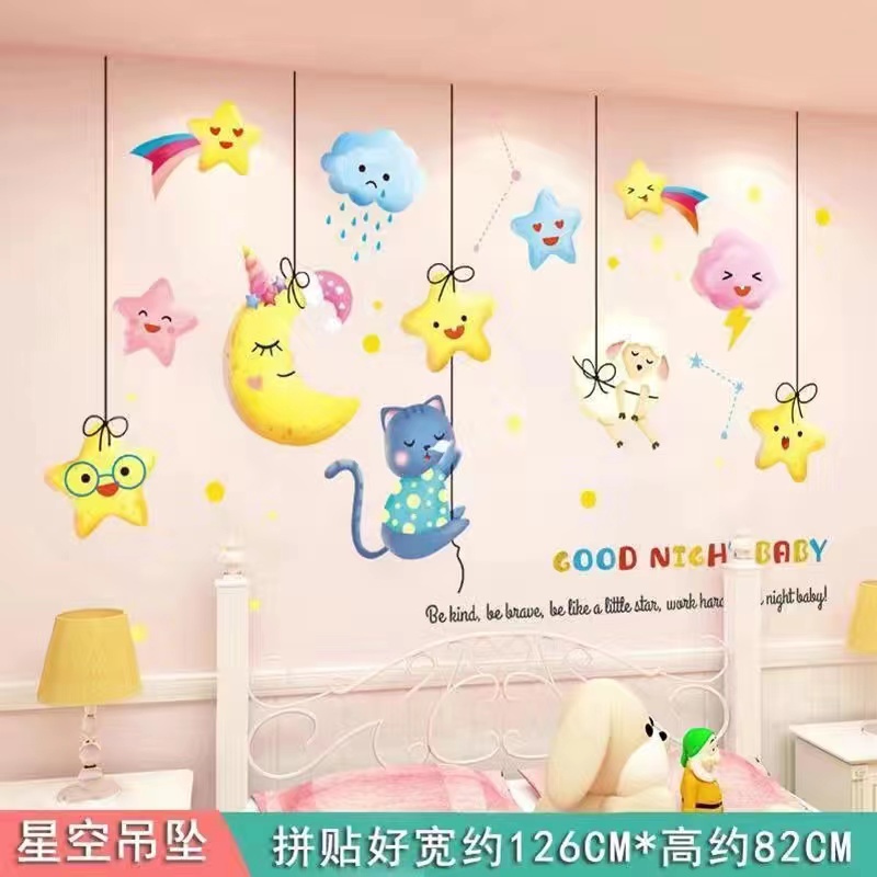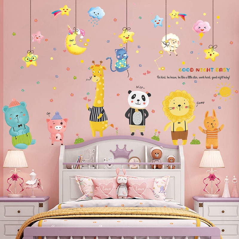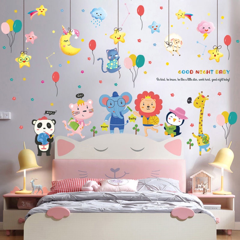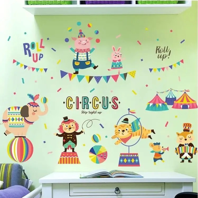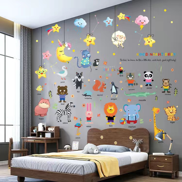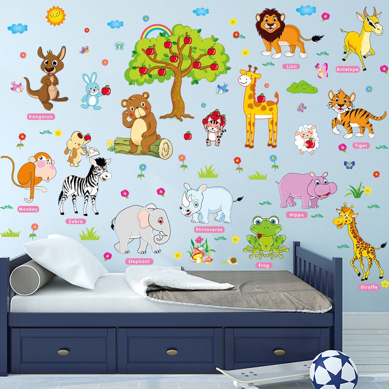 Cartoon wall stickers for kids bedroom paper bedside wallpaper, Self-adhesive Cartoon Animal painting, Early educational kindergarten wall Decorative wall stickers
