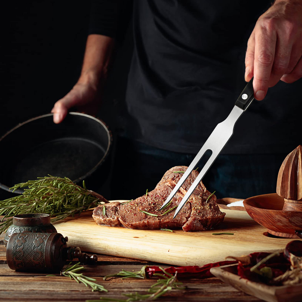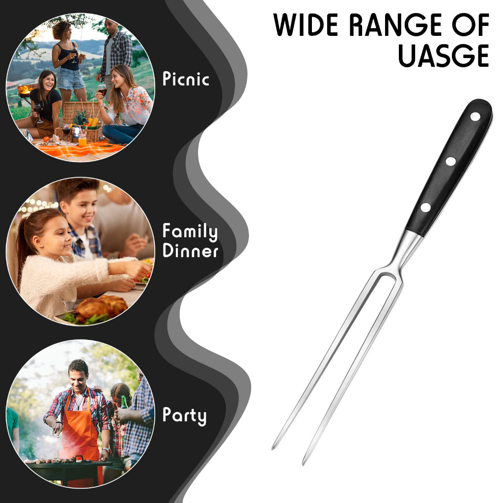 Carving Fork 30CM Stainless Steel Meat Fork Heavy Duty BBQ Fork With Wood Handle For Cooking