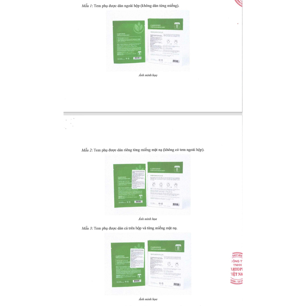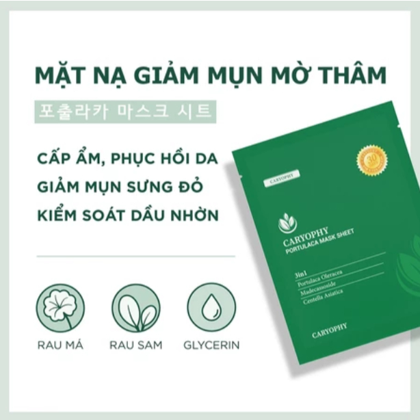 Caryophy Portulaca Sheet Mask Helps reduce acne, dark spots, and moisturizes skin 22g/piece