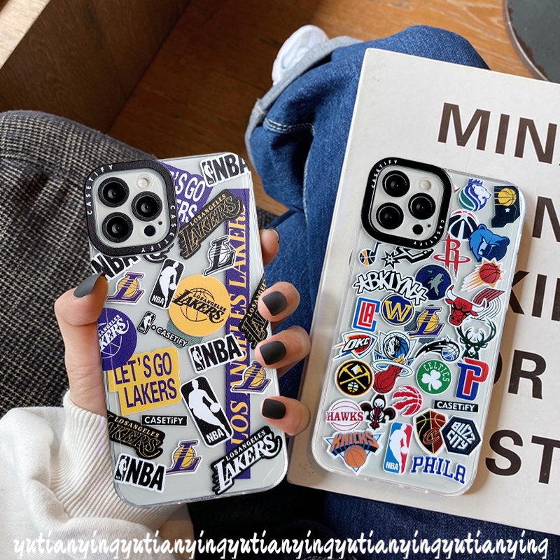 Case Compatible for IPhone 7 8 Plus 6 6s Plus 11 13 12 Pro Max XR X XS Max SE 2020 Trend Brand NBA Lakers Label Sticker Soft Tpu Back Cover