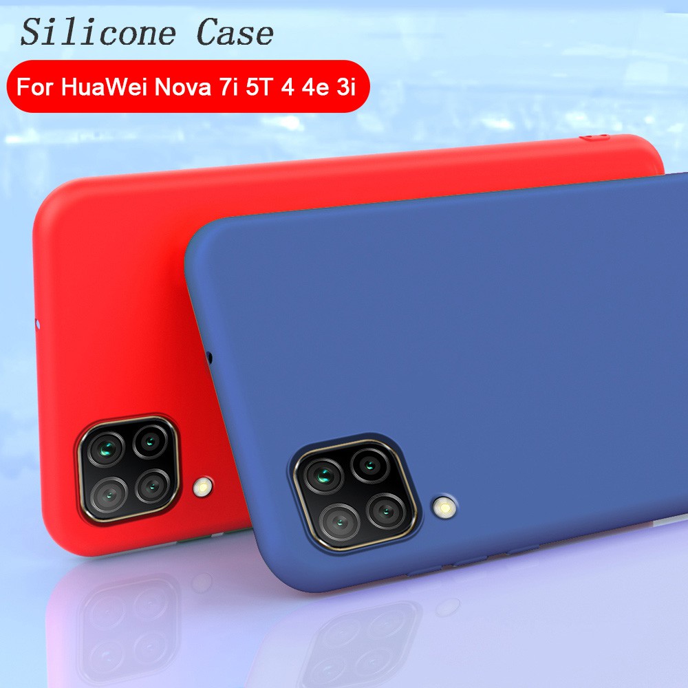 Case For Huawei Nova 7i 5T 4 4e 3i Liquid Silicone Phone Case Nova7i Nova5T Nova4 Nova4e Nova3i Soft Flannel Green TPU Casing Smooth Simple AntiShock Shockproof Pink Black Blue Back Cover