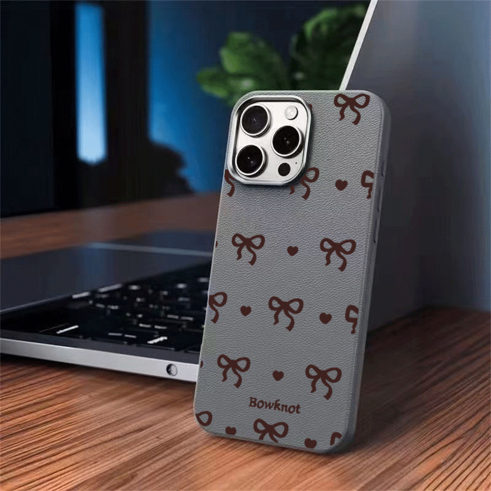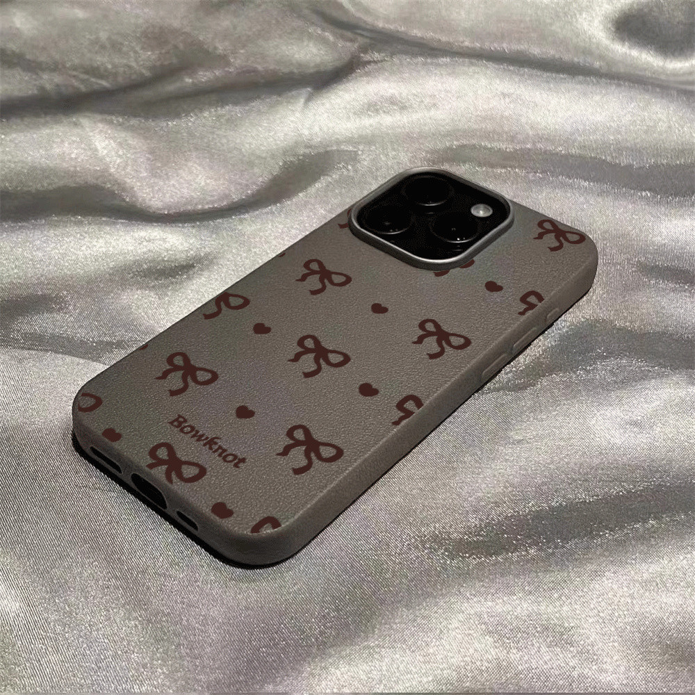 Case For Leather Color OPPO A3X A60 A18 A38 A78 A58 Reno 8T A57 2022 A17 A16 A16K A16E A15 A15S A54S A3S A5S A12E A12 Brown Bow Tie cover